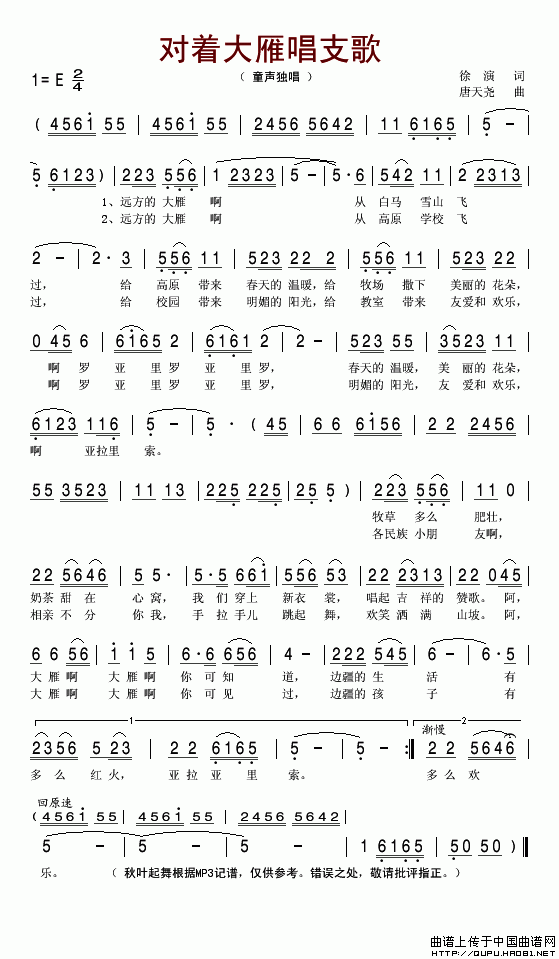 提示:在曲谱图片上单击右键,选择“图片另存为...”即可将曲谱保存到您的电脑中,打印时候可将图片插入到WORD中,调整合适大小打印即可。