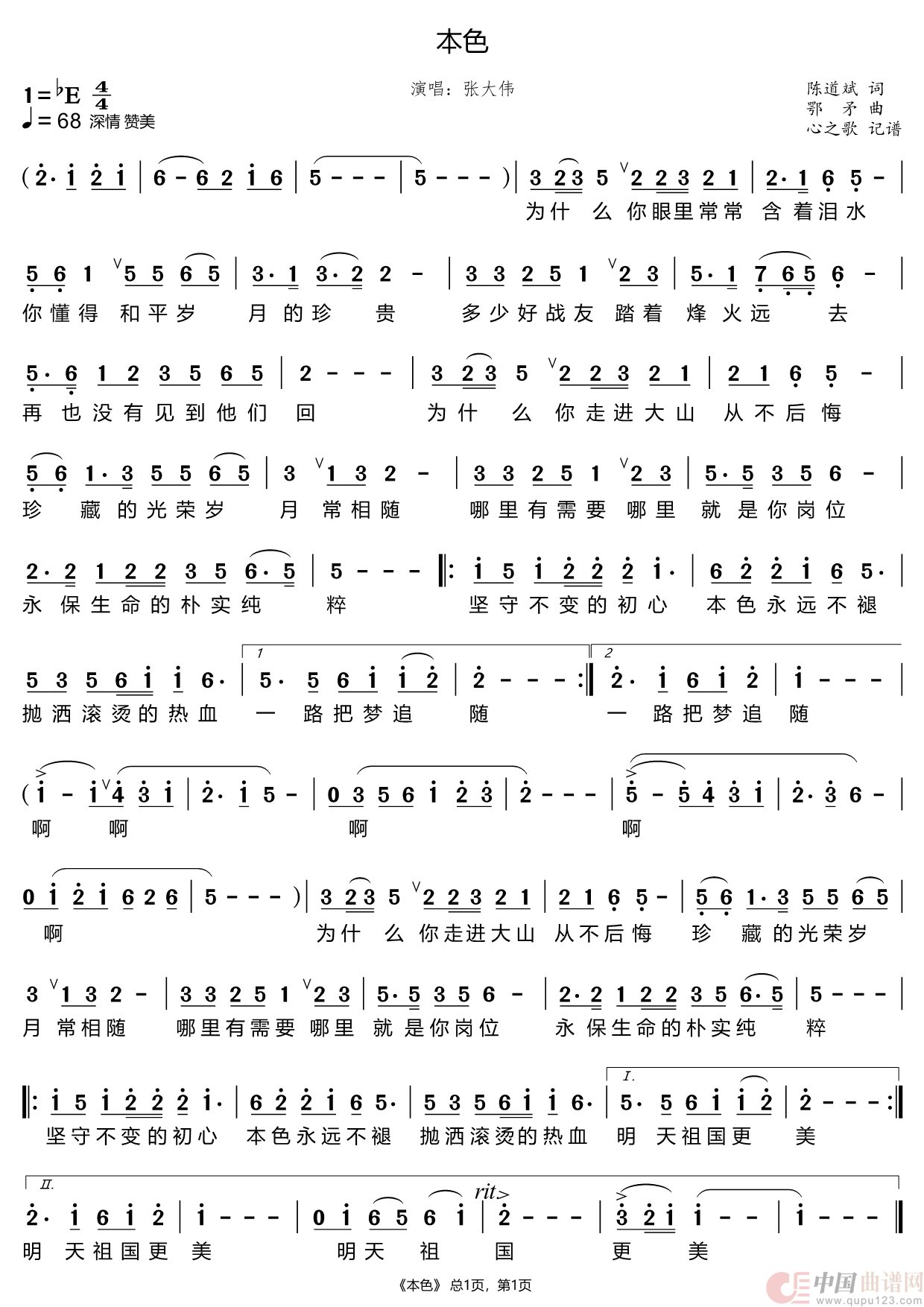 关于《本色》曲谱的评论