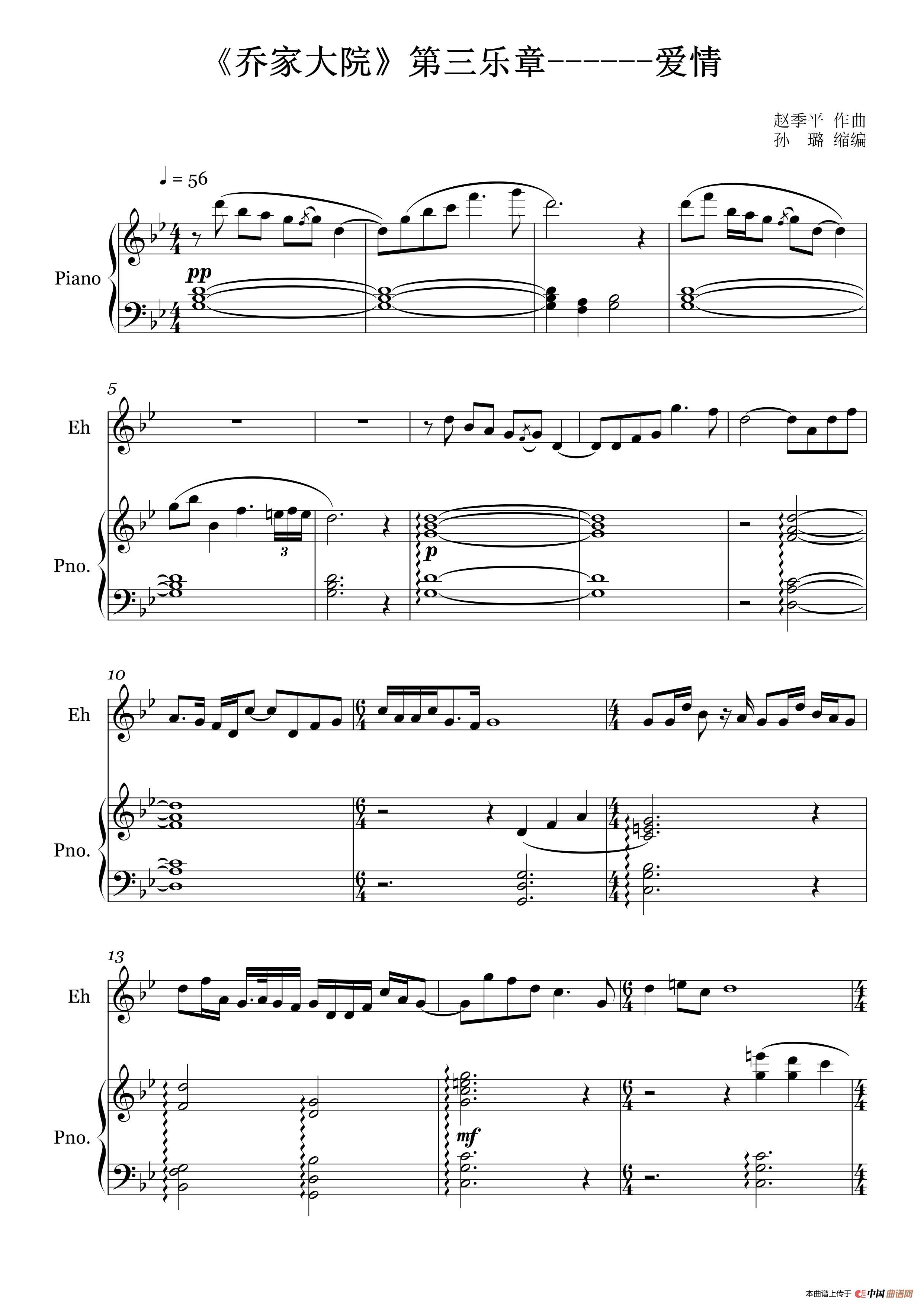 关于《 乔家大院组曲3情爱》曲谱的评论