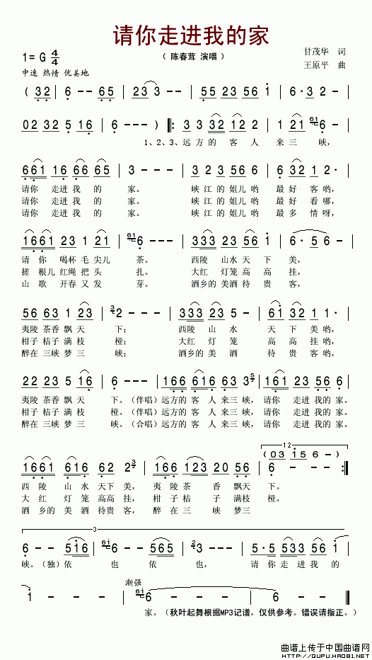 关于《请你走进我的家》曲谱的评论