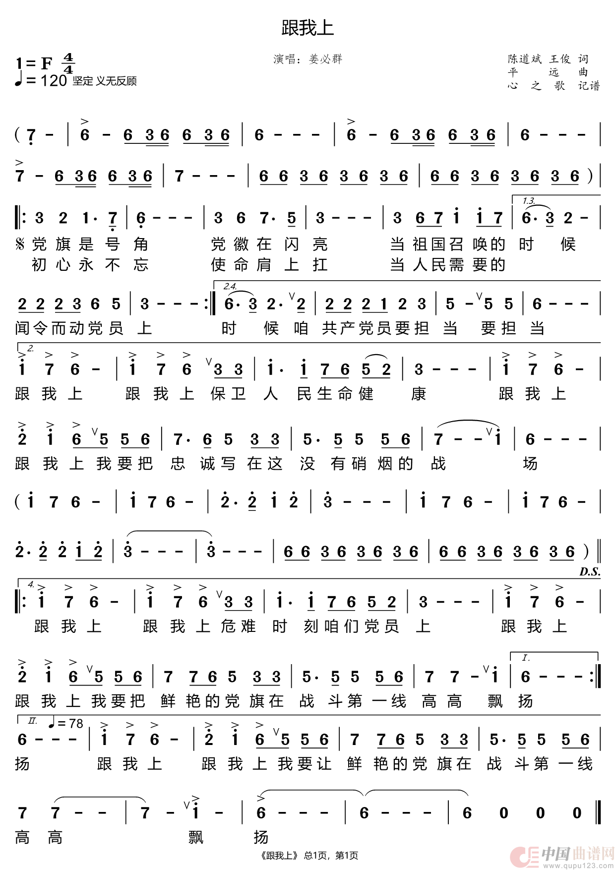 提示:在曲谱图片上单击右键,选择"图片另存为..."即可将曲谱保存到您的电脑中,打印时候可将图片插入到WORD中,调整合适大小打印即可。