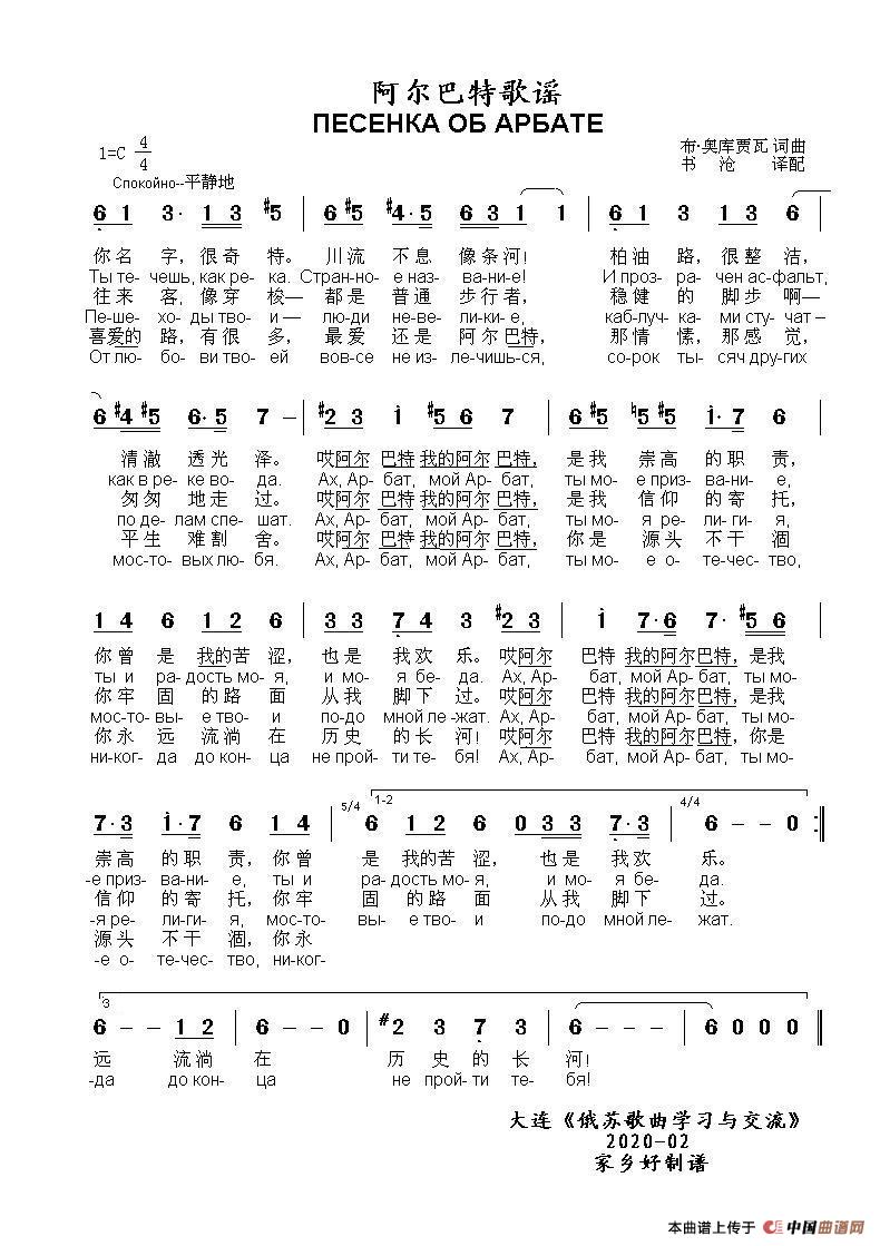阿尔巴特歌谣ПЕСЕНКА ОБ АРБАТЕ(中俄简谱)