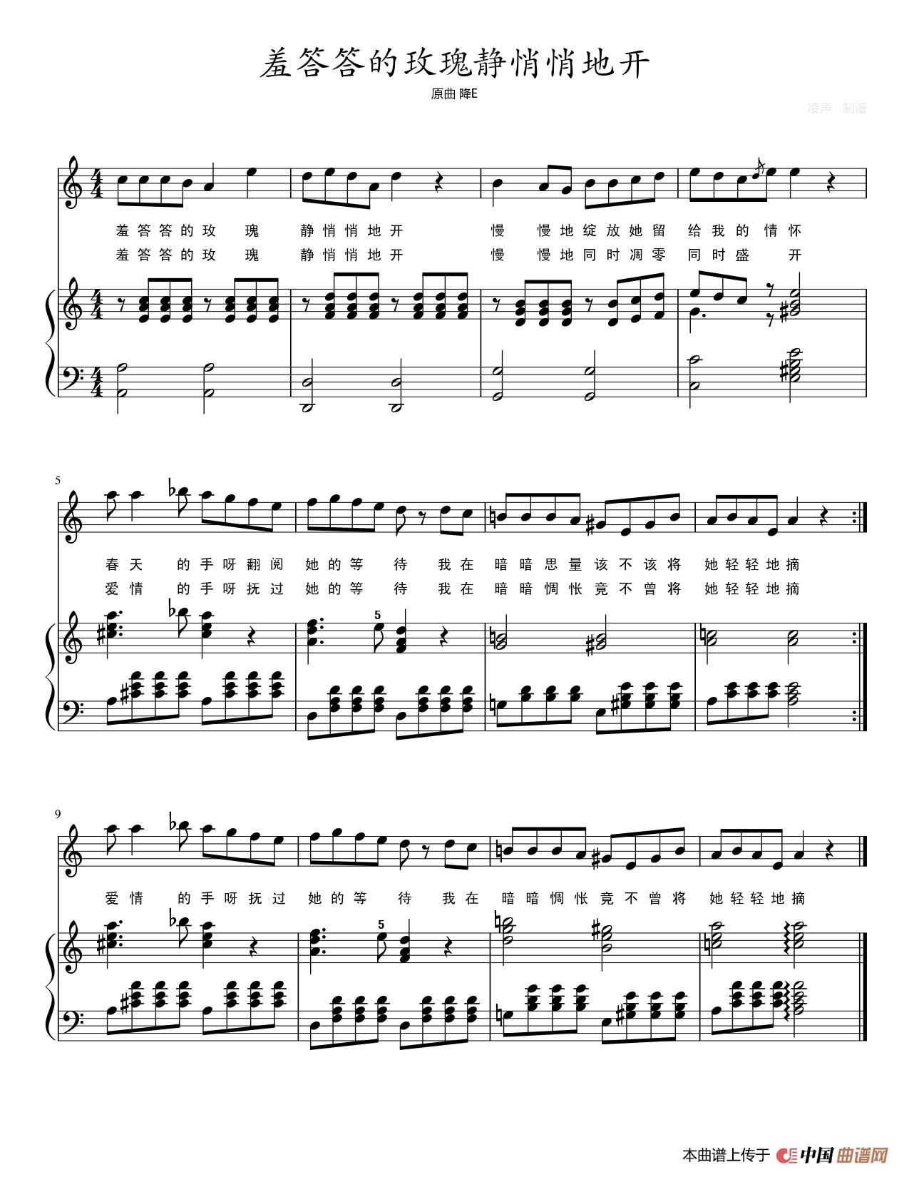 羞答答的玫瑰静悄悄地开(弹唱谱)