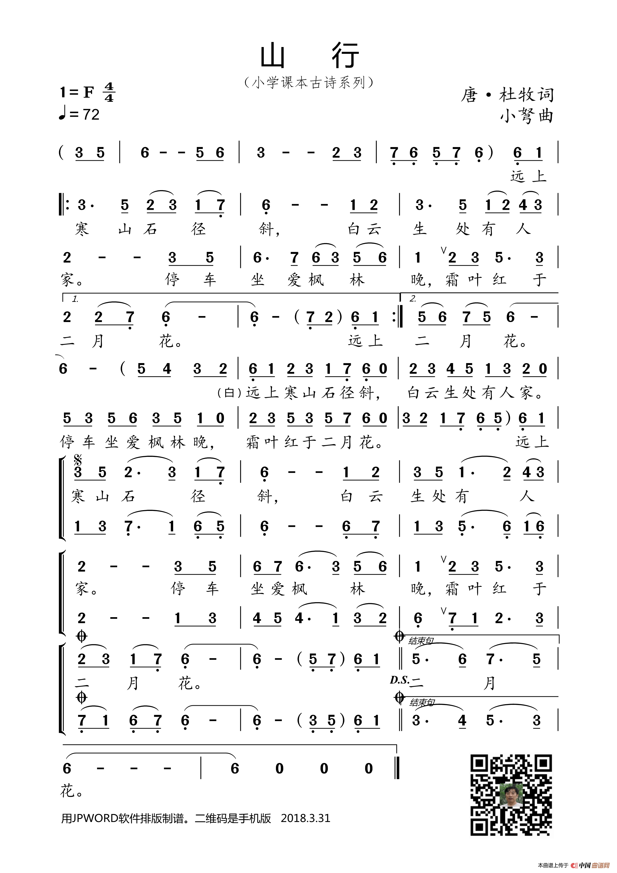 提示:在曲谱图片上单击右键,选择"图片另存为..."即可将曲谱保存到您的电脑中,打印时候可将图片插入到WORD中,调整合适大小打印即可。