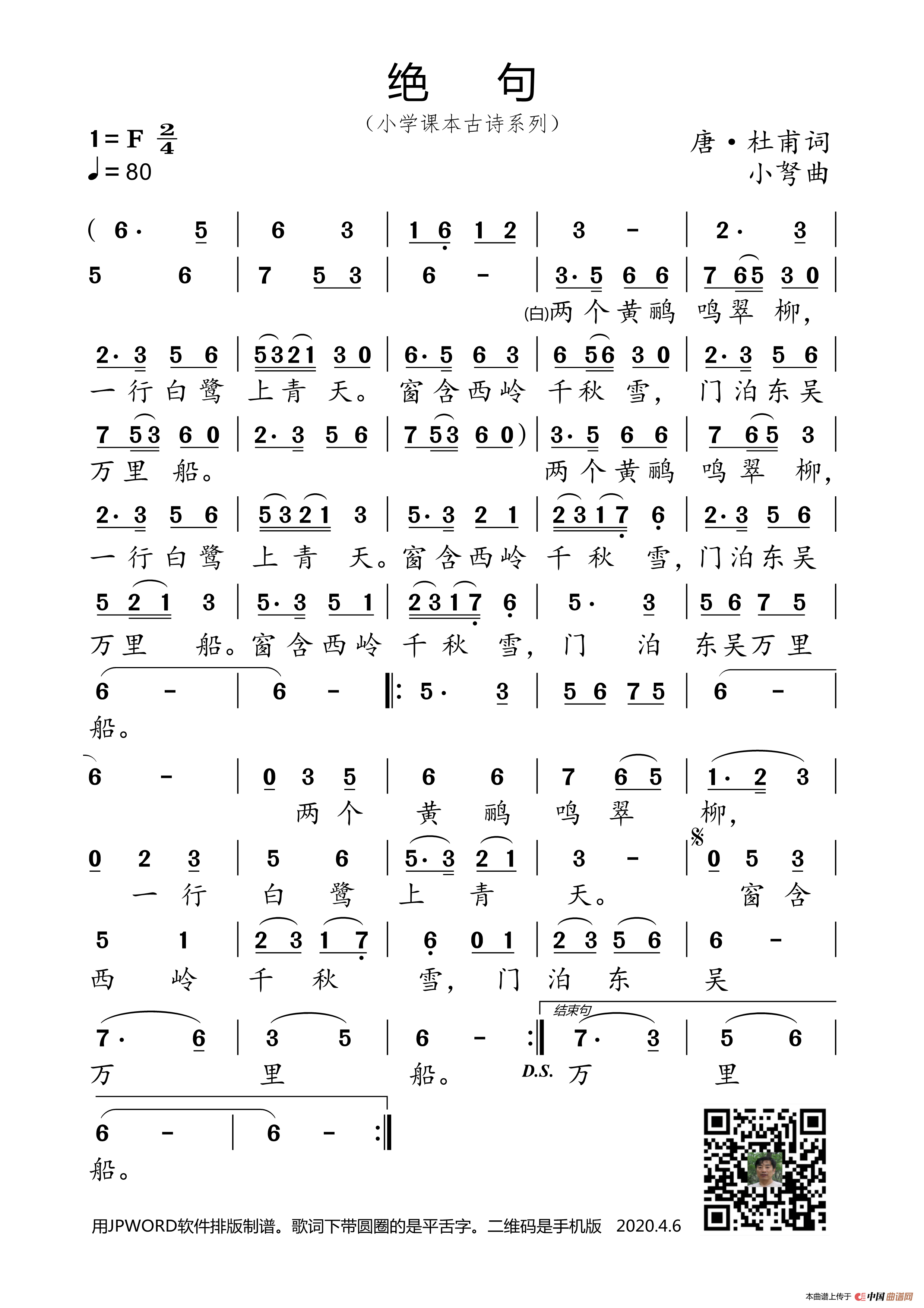 关于《绝句》曲谱的评论