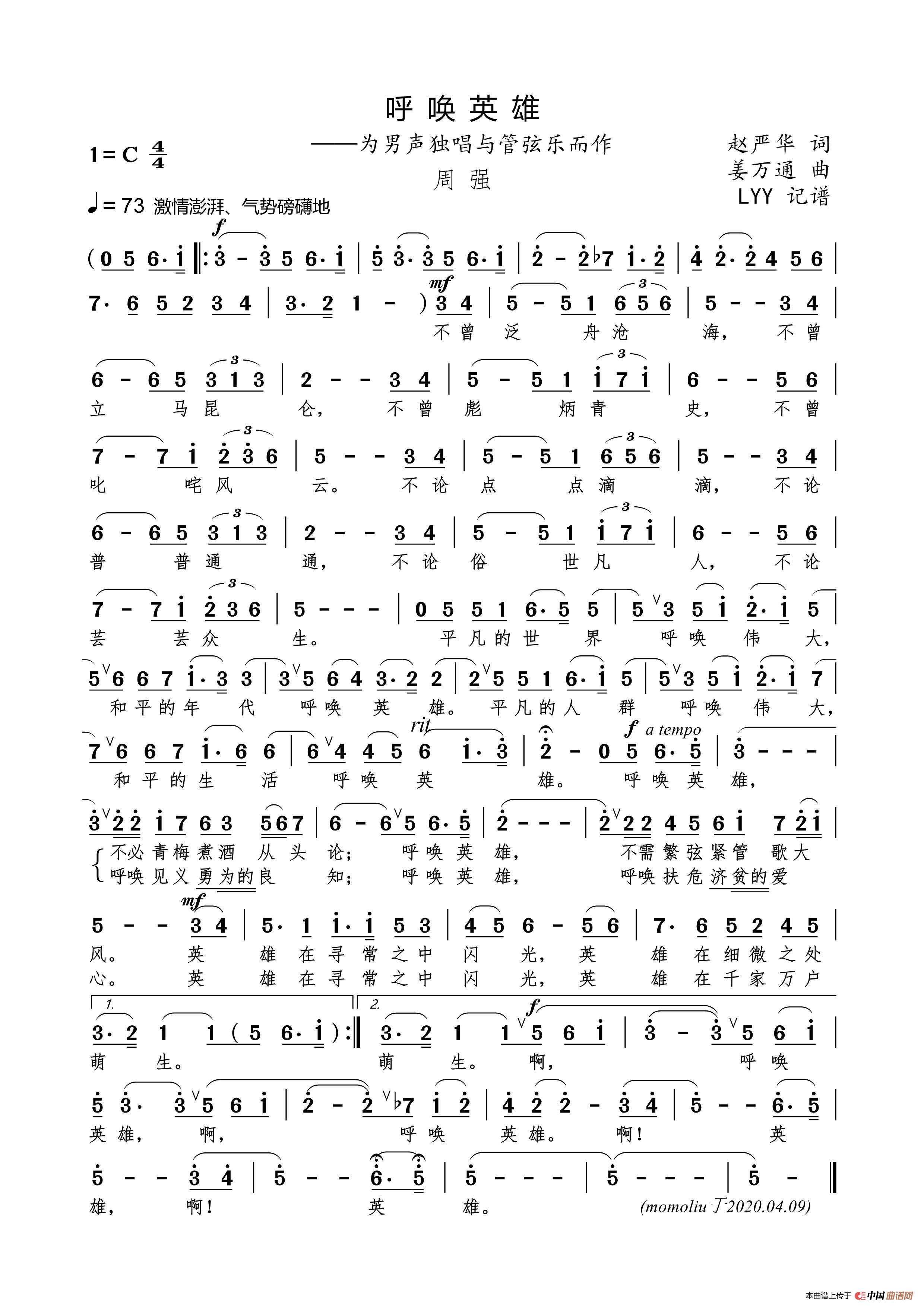 这首歌的作曲是中国音乐学院作曲系教授姜万通,首唱是中国音乐学院的王景。周强演唱版在歌词编配上做了些调整改变。