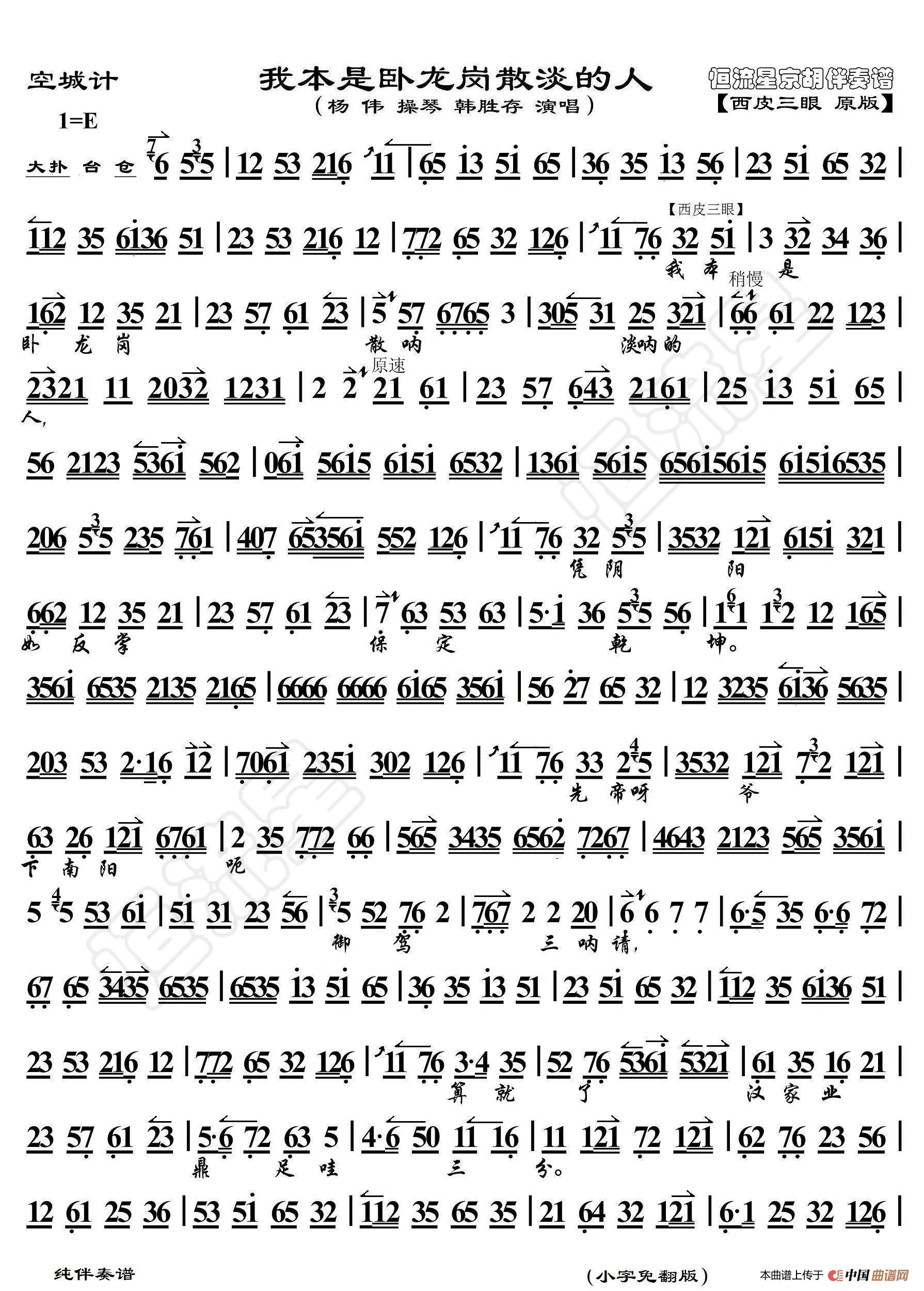 空城计·我本是卧龙岗散淡的人(京胡伴奏谱)