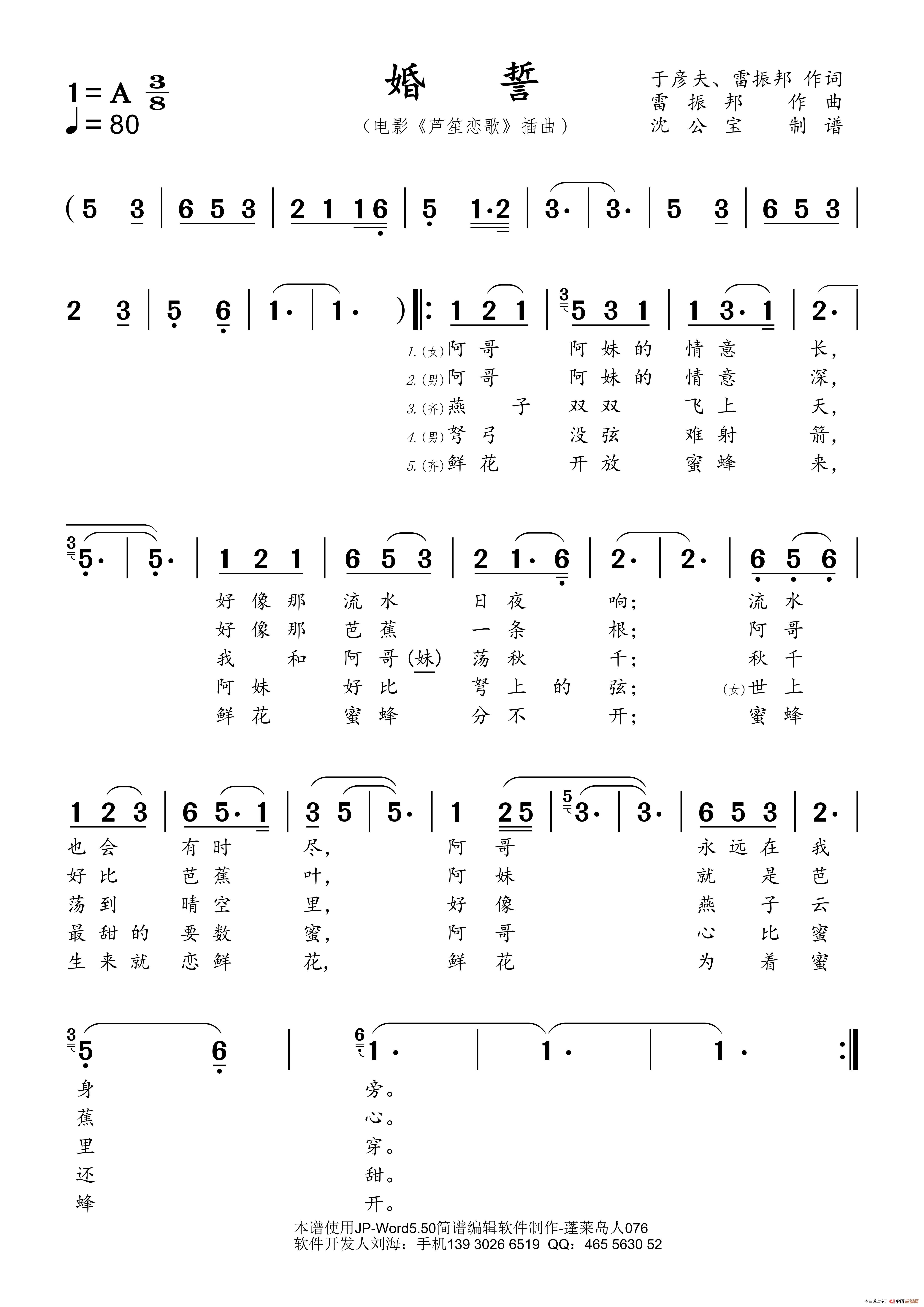 关于《婚誓》曲谱的评论