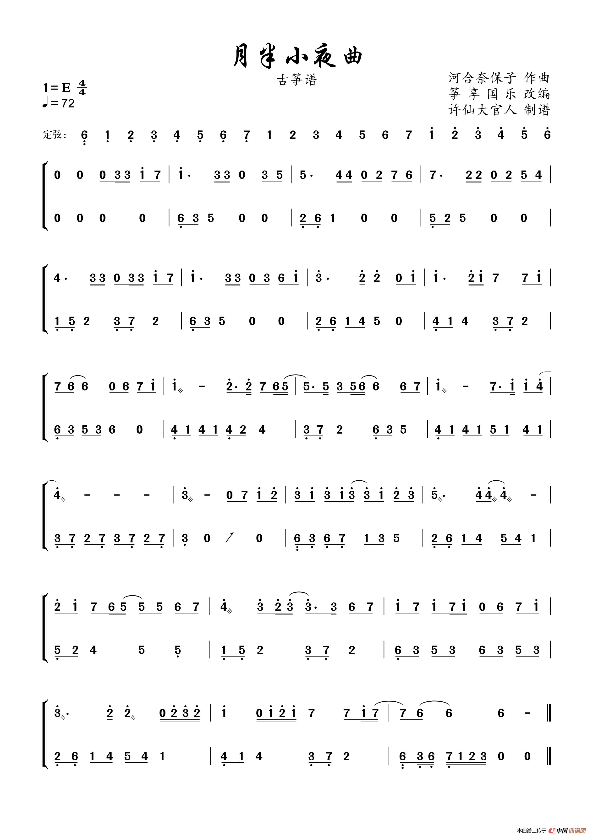 月半小夜曲(古筝谱)