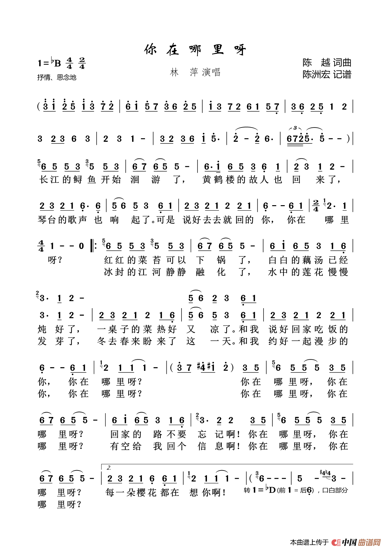 关于《你在哪里呀》曲谱的评论