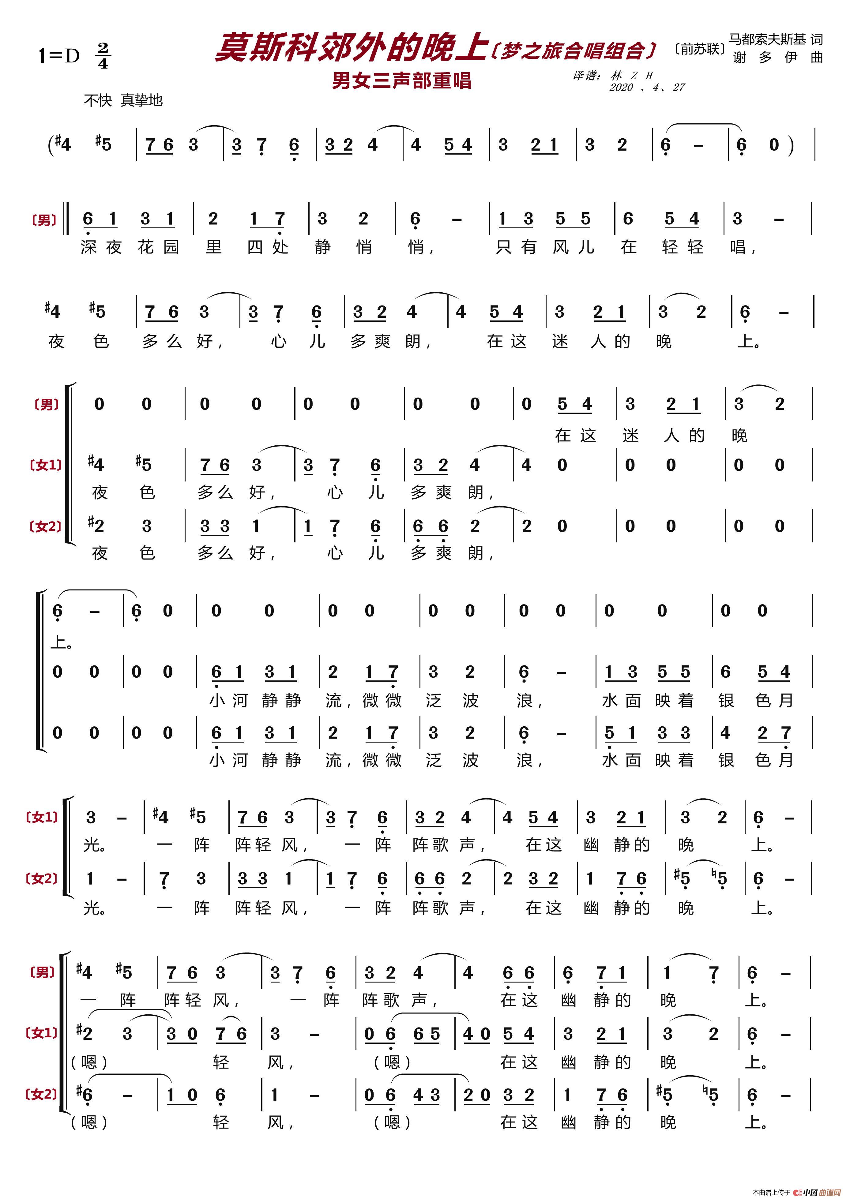 关于《莫斯科郊外的晚上〔梦之旅合唱组合〕》曲谱的评论