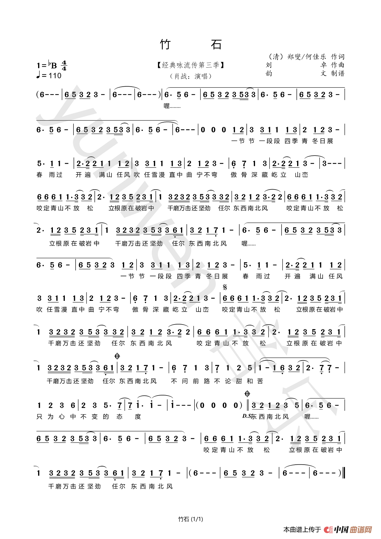 关于《竹石》曲谱的评论