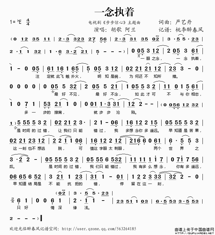作词:严艺丹   作曲:严艺丹   演唱(奏):胡歌、阿兰   格式:简谱   来源:桃李醉春风记谱   上传:桃李醉春风   日期:2011-09-06   浏览次数: