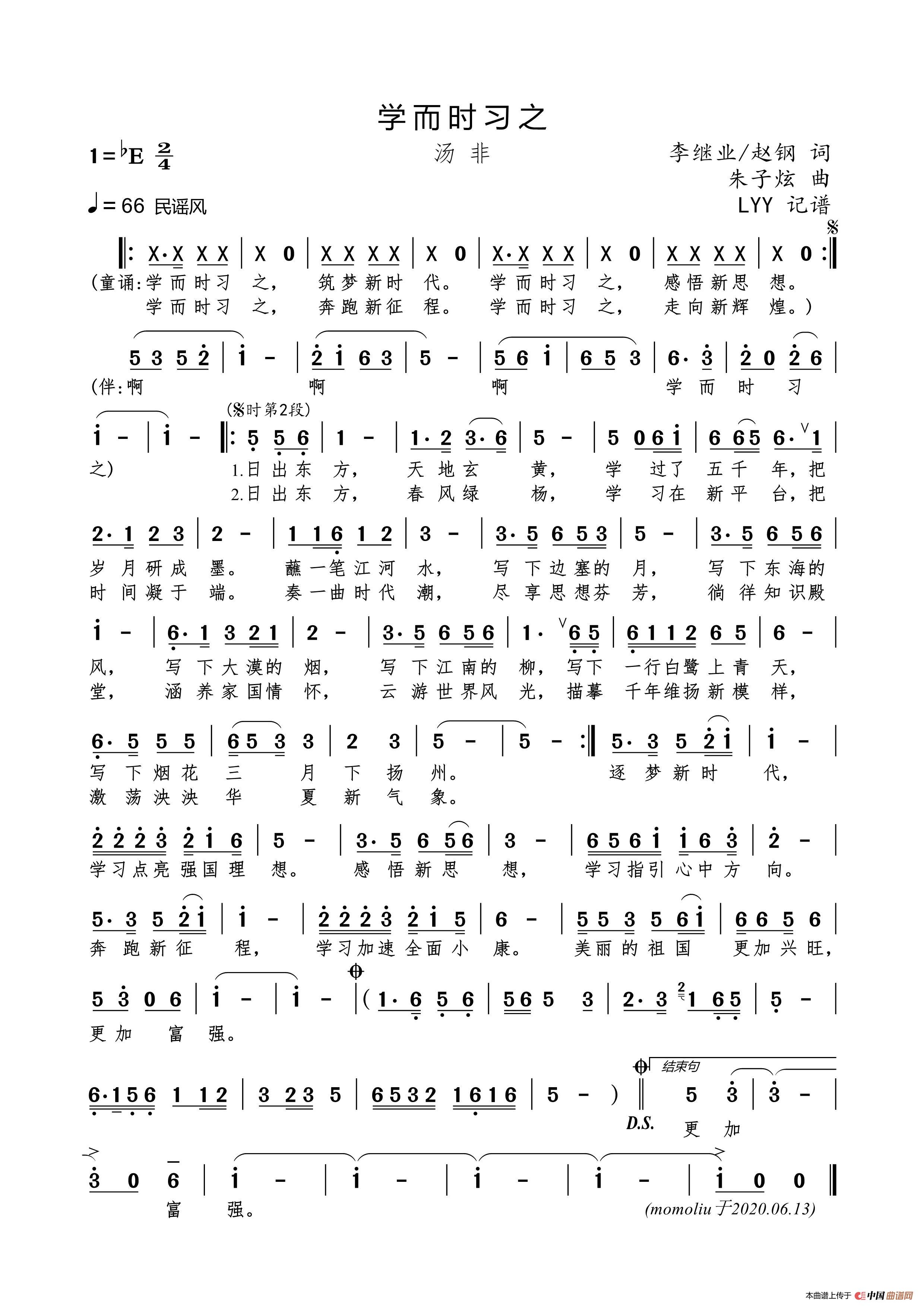 学而时习之(李继业/赵钢词 朱子炫曲)