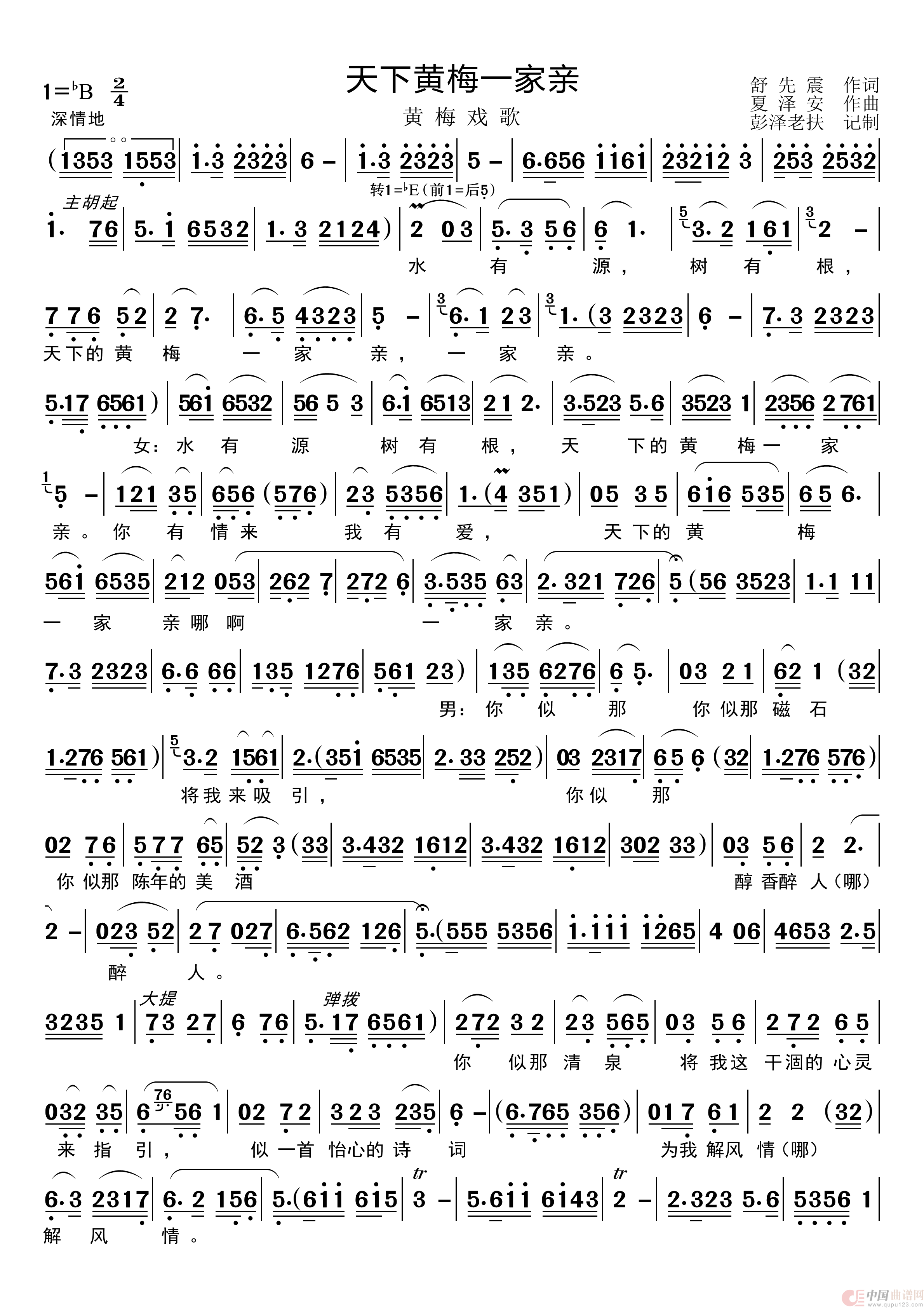 关于《天下黄梅一家亲》曲谱的评论