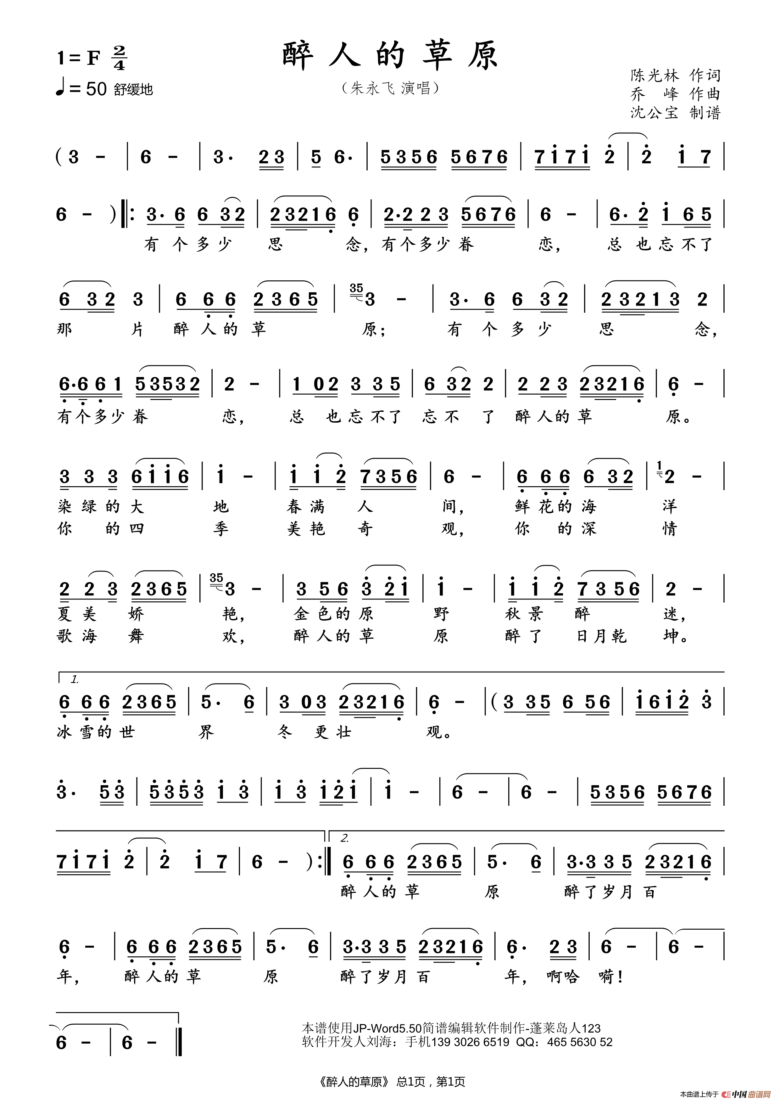 此制谱质量非常精致,辛苦了!其中染绿的大地,听歌曲是“绿染的大地”,是否有误
