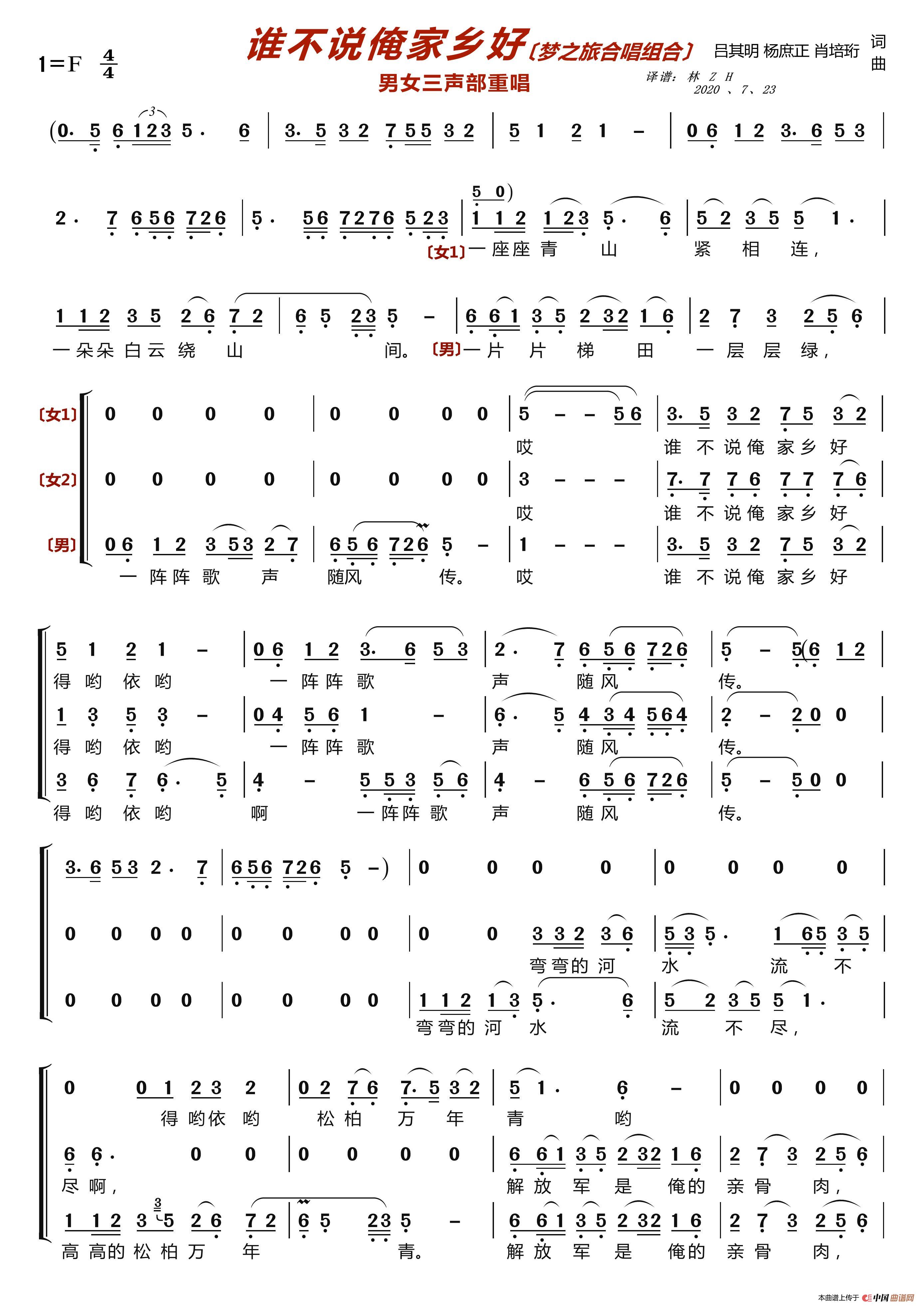 关于《谁不说俺家乡好〔梦之旅合唱组合〕》曲谱的评论
