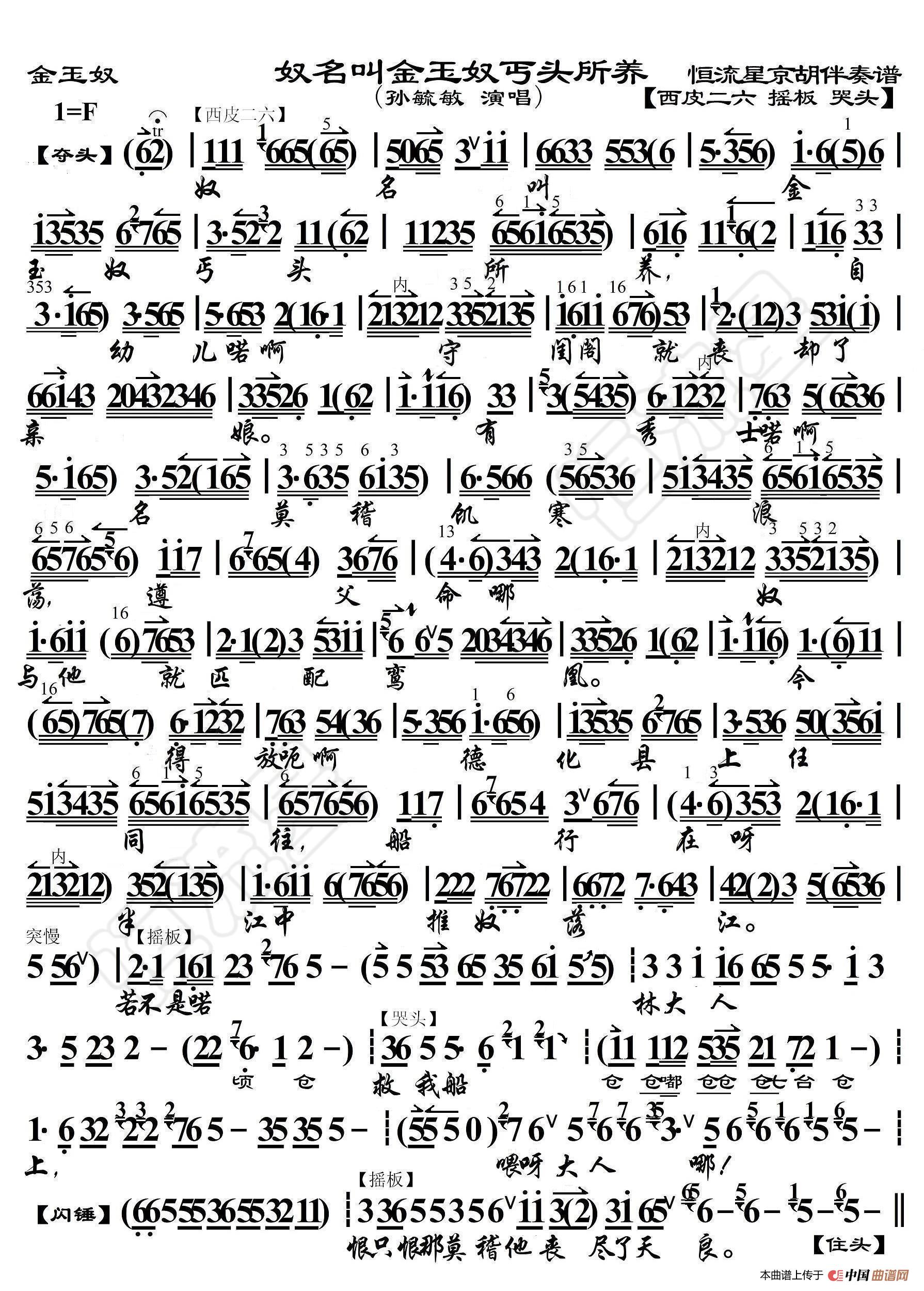金玉奴·奴名叫金玉奴丐头所养(京胡伴奏谱)