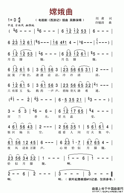 关于《嫦娥曲》曲谱的评论