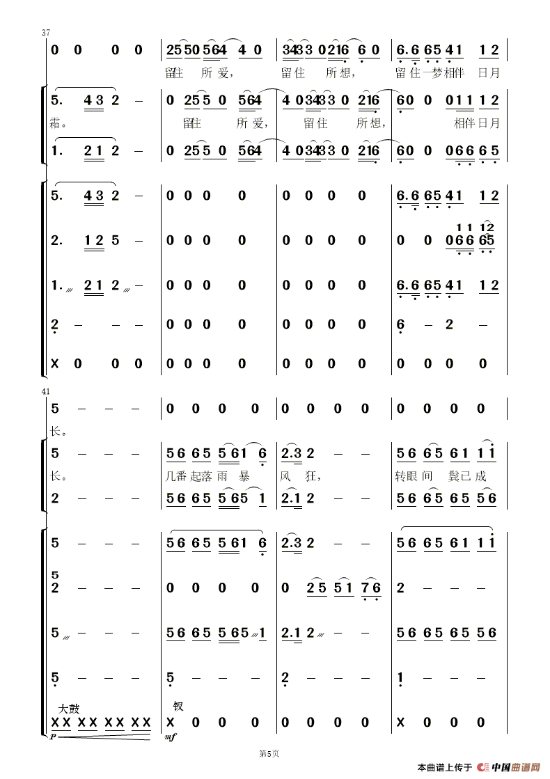 提示:在曲谱图片上单击右键,选择"图片另存为..."即可将曲谱保存到您的电脑中,打印时候可将图片插入到WORD中,调整合适大小打印即可。