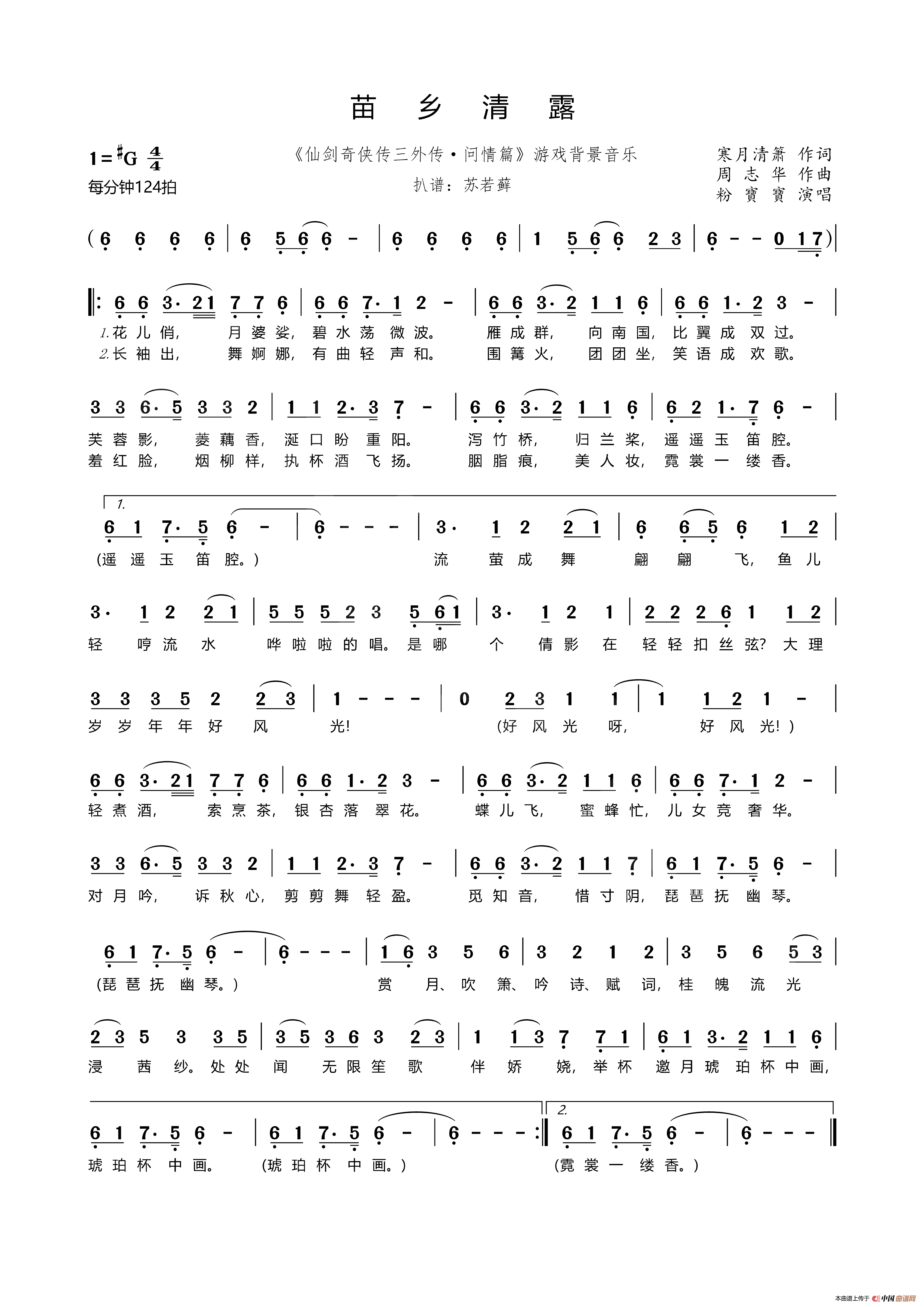 苗乡清露(《仙剑奇侠传三外传·问情篇》游戏背景音乐)