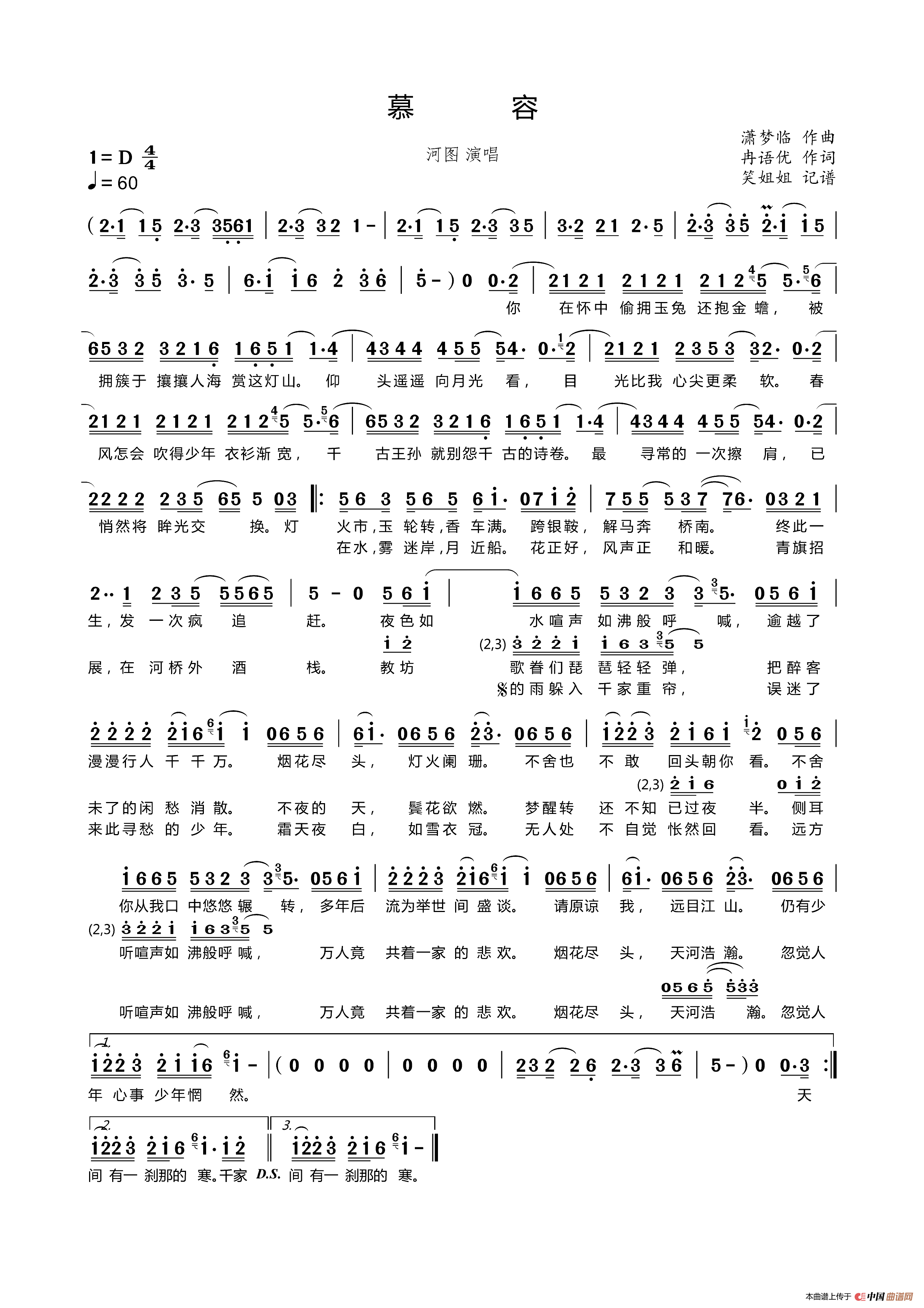 作词:冉语优   作曲:潇梦临   演唱(奏):河图   来源:谱友笑姐姐上传   上传:笑姐姐   日期:2020-10-03   浏览次数: