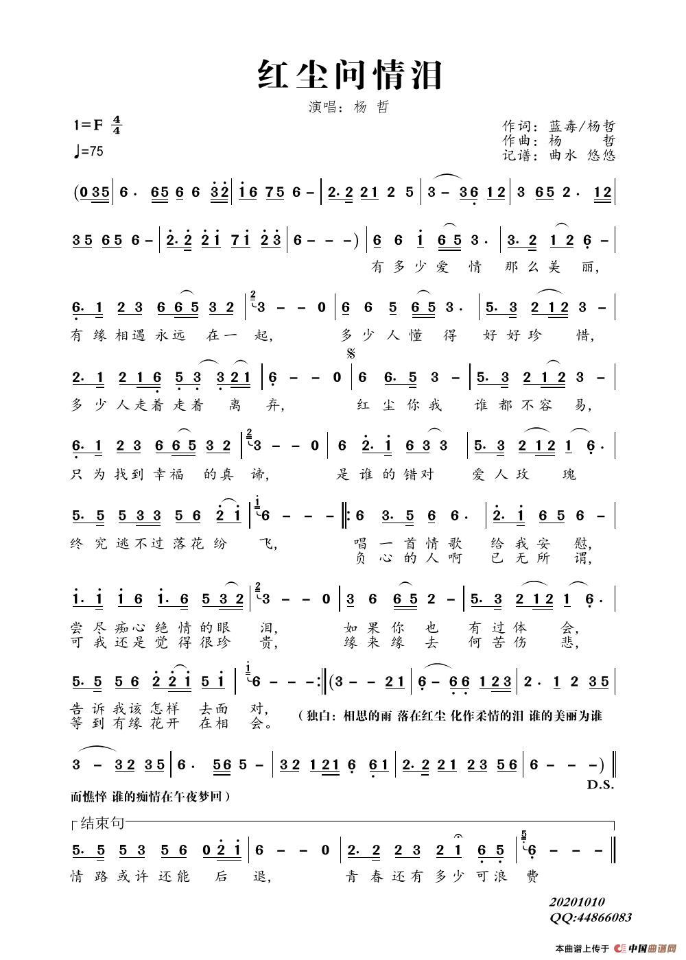 关于《红尘问情泪》曲谱的评论
