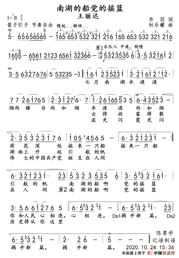 关于《南湖的船党的摇篮王丽达版》曲谱的评论