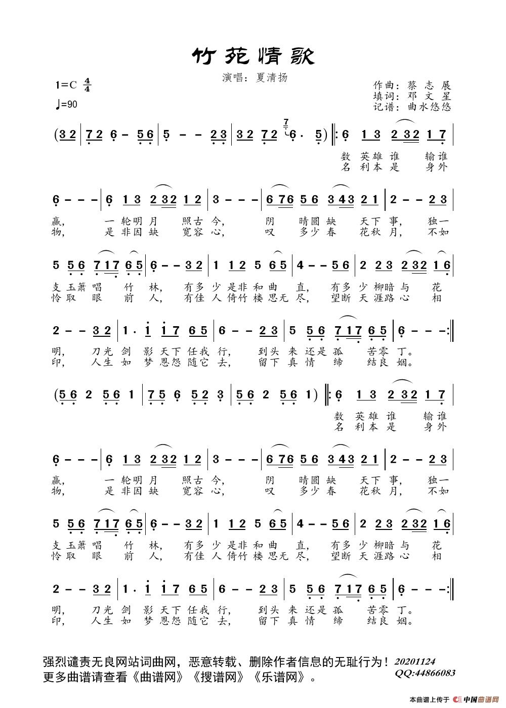 关于《竹苑情歌》曲谱的评论