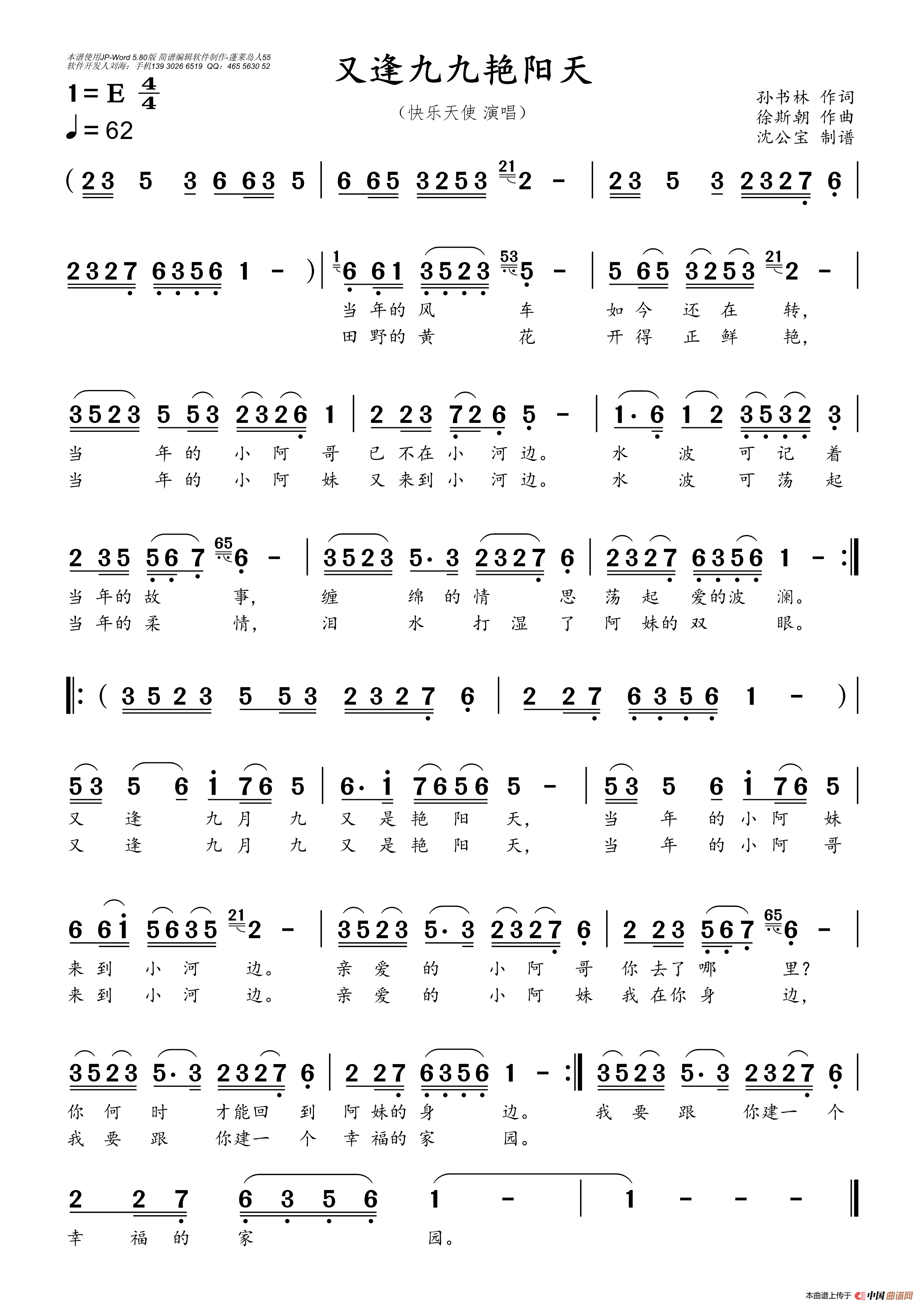 关于《又逢九九艳阳天》曲谱的评论