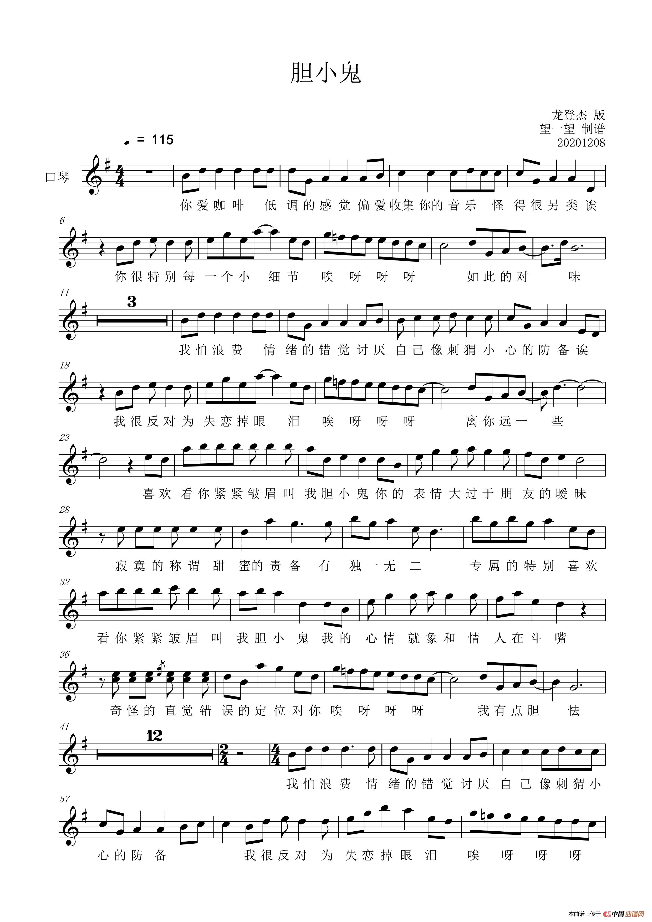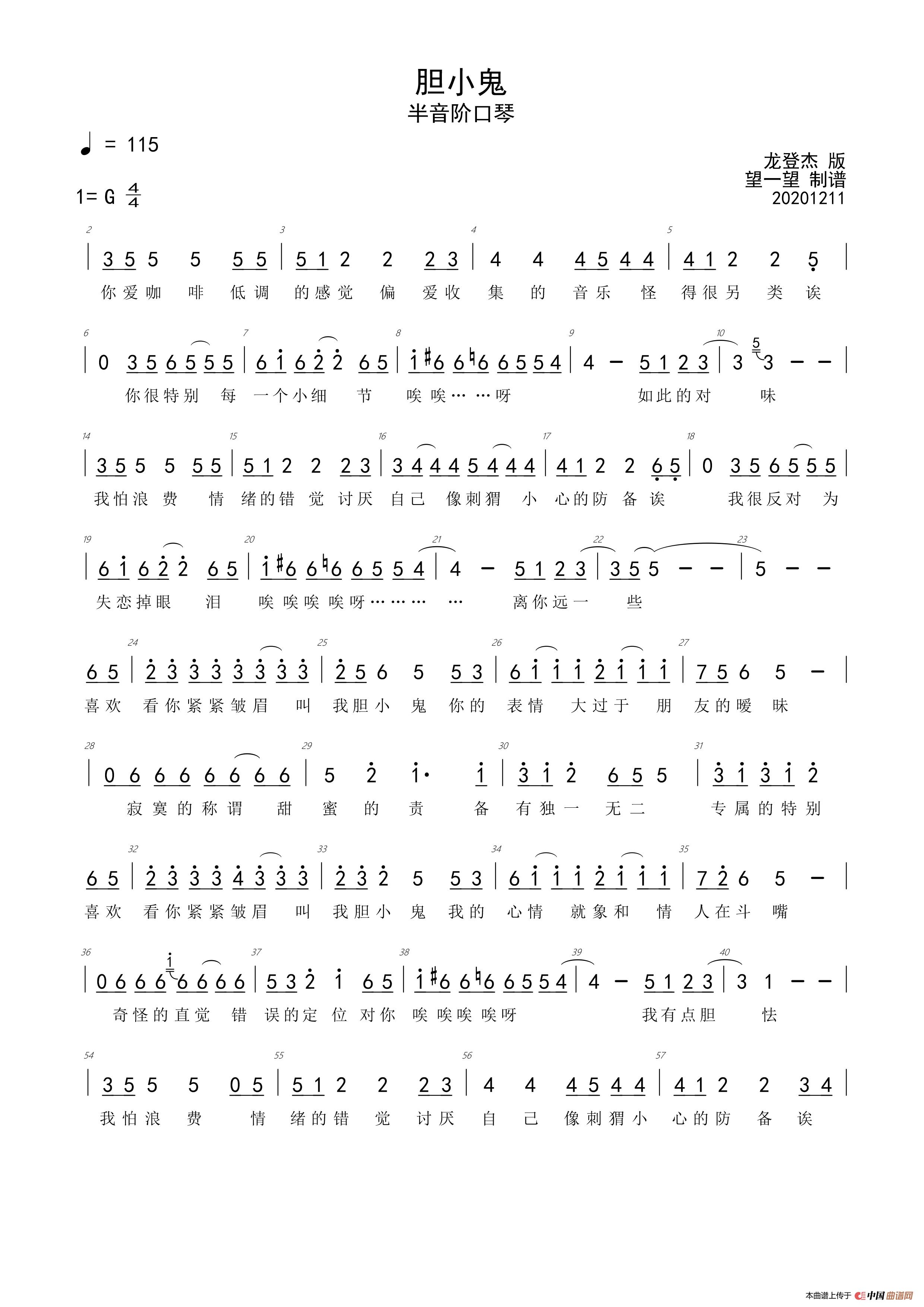 胆小鬼 -G- 首调简谱(半音阶口琴)