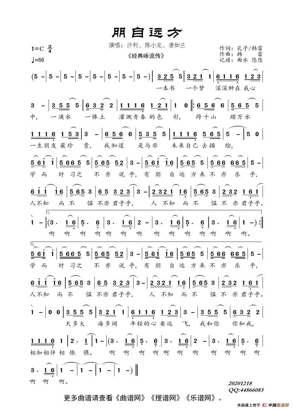 《朋自远方》原创作品 孔子作词 韩雷作词 韩雷作曲 沙利演唱 陈小龙演唱 唐如兰演唱 www.ktvc8.com/article/article_670477_1.html 请关注、收藏、点赞、评论、分享!