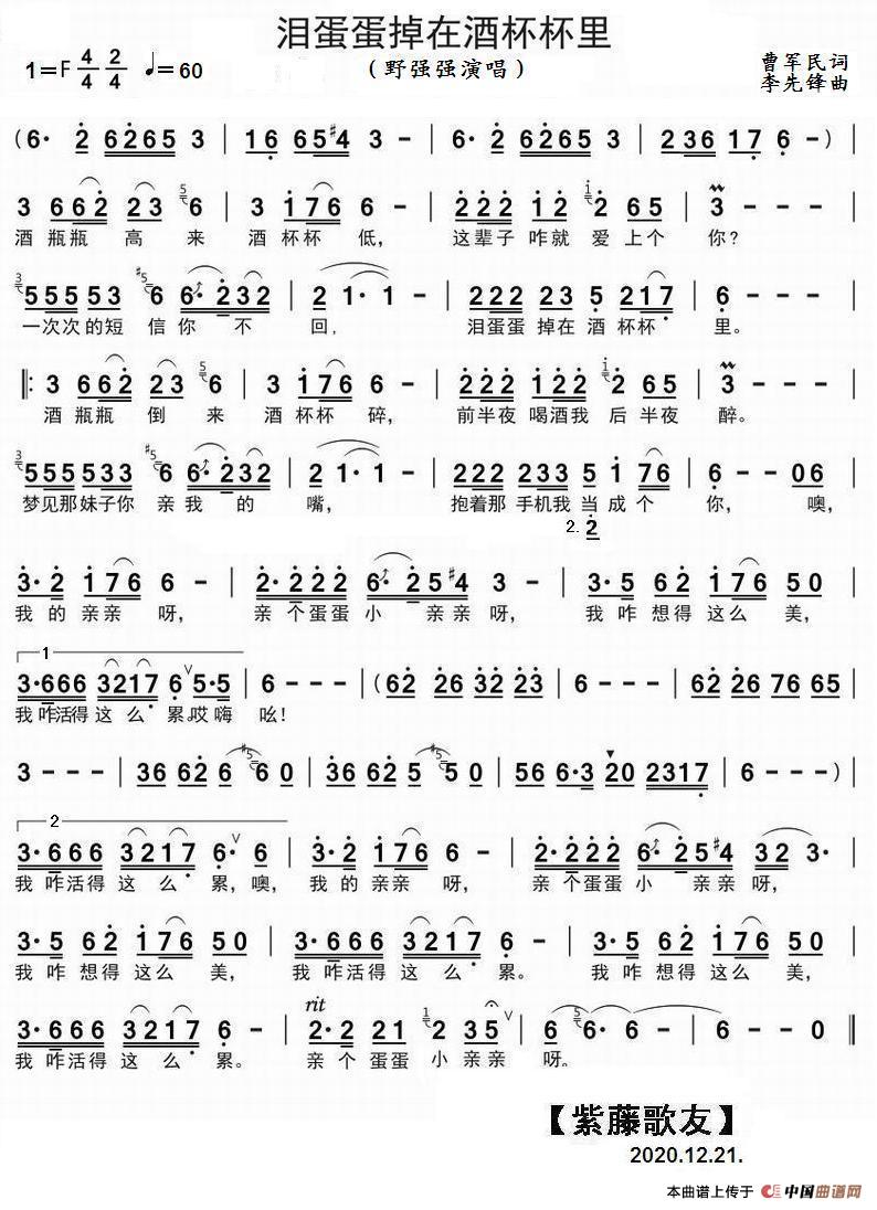 关于《泪蛋蛋掉在酒杯杯里》曲谱的评论