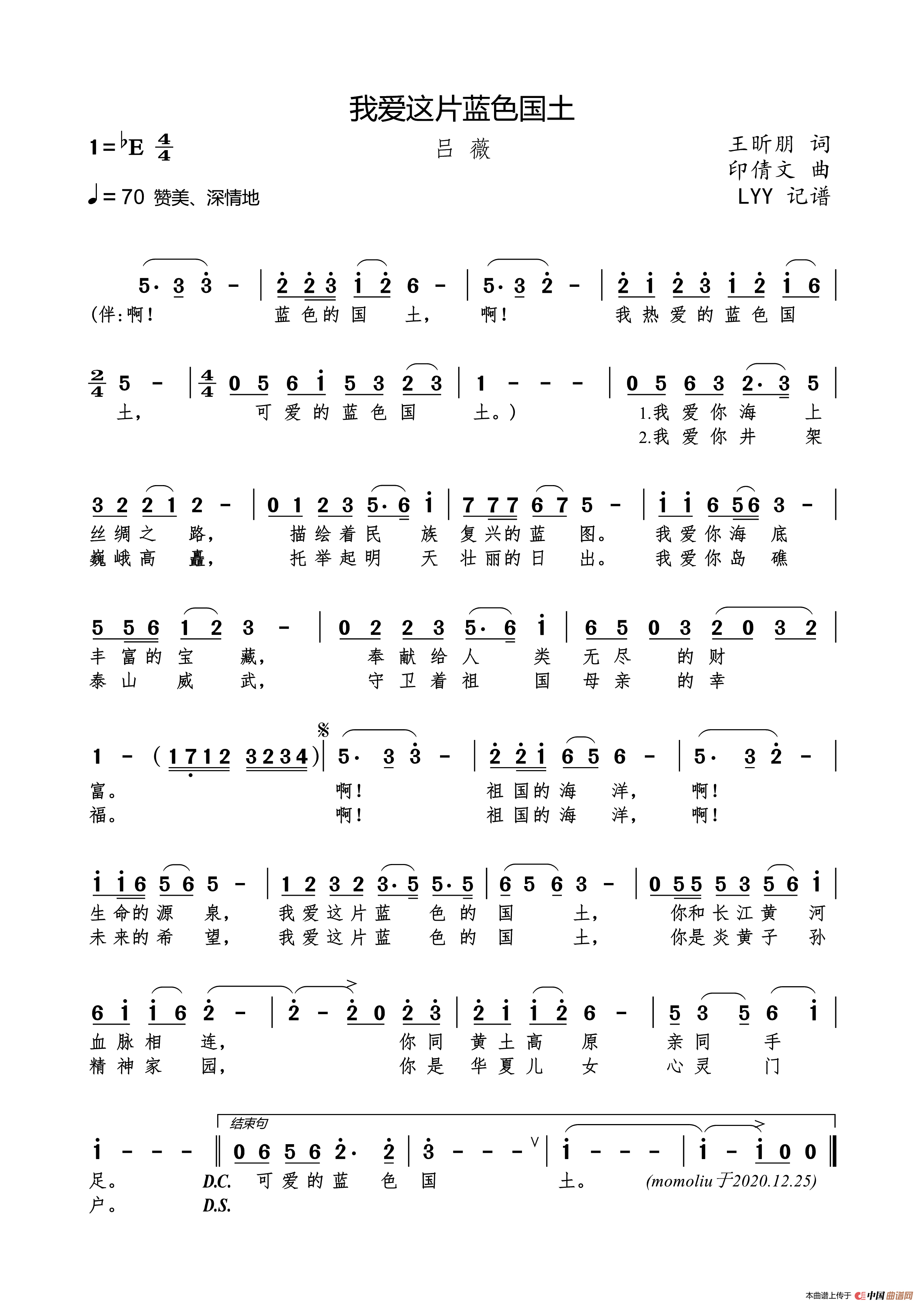 我爱这片蓝色国土(王昕朋词 印倩文曲)