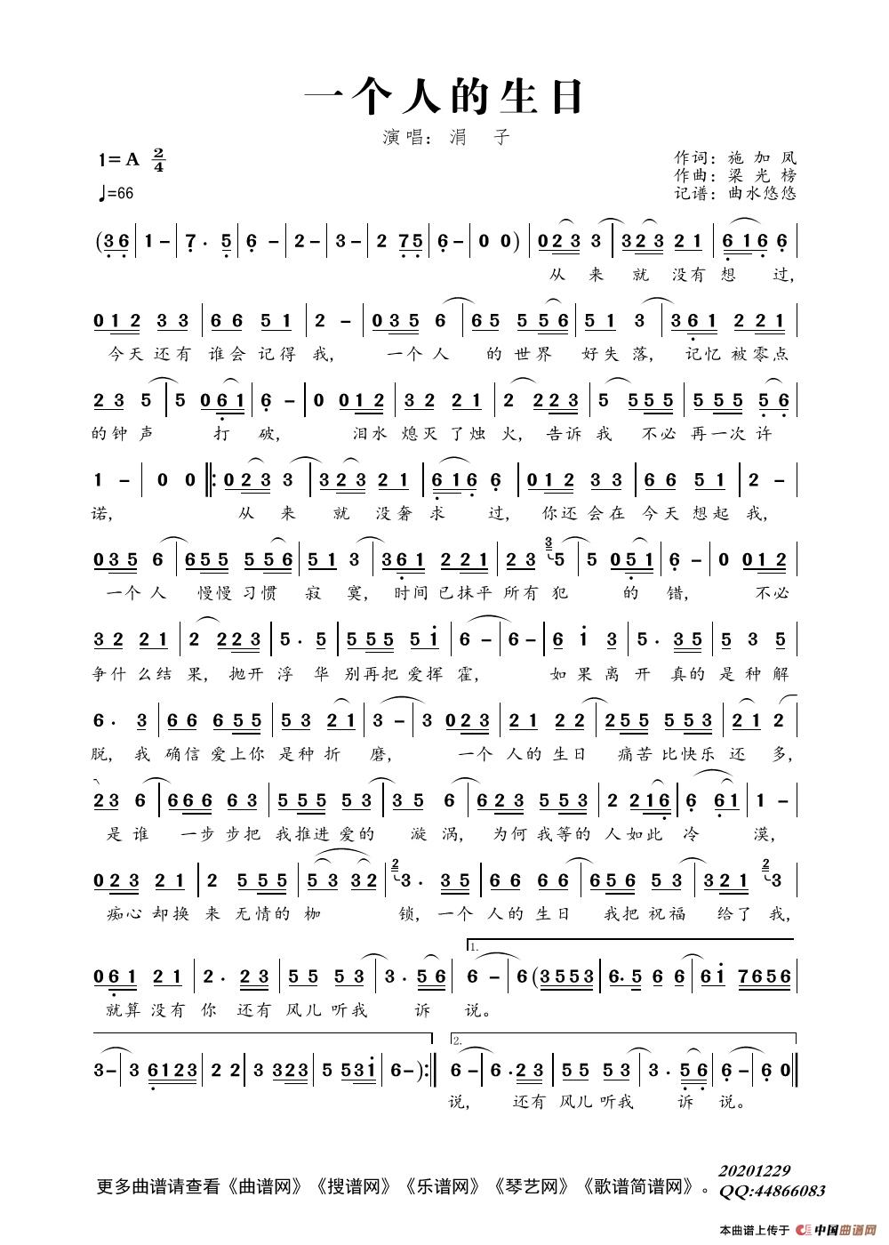 《一个人的生日》原创作品 施加凤作词 梁光榜作曲 涓子演唱 www.ktvc8.com/article/article_671983_1.html 请关注、收藏、点赞、评论、分享!
