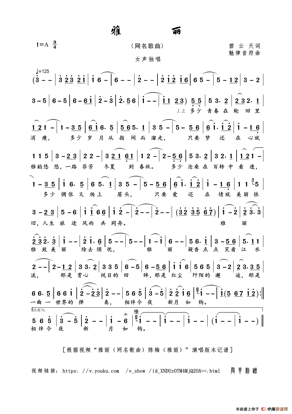 雅丽(网名歌曲)(碧云天词 魅律音符曲)