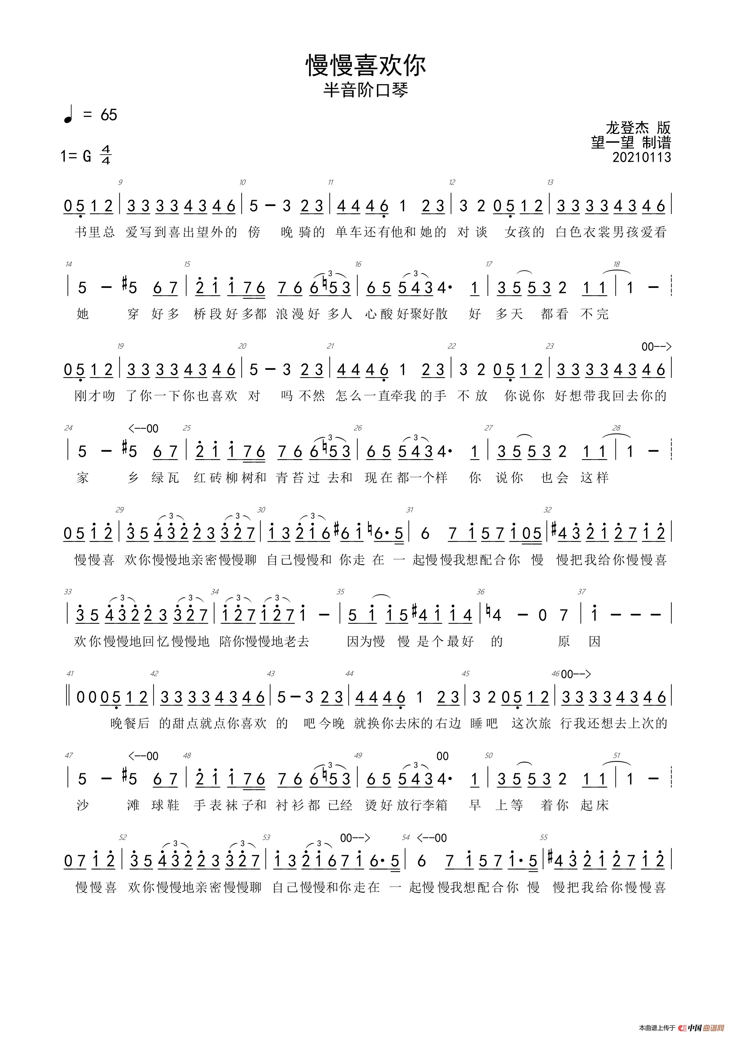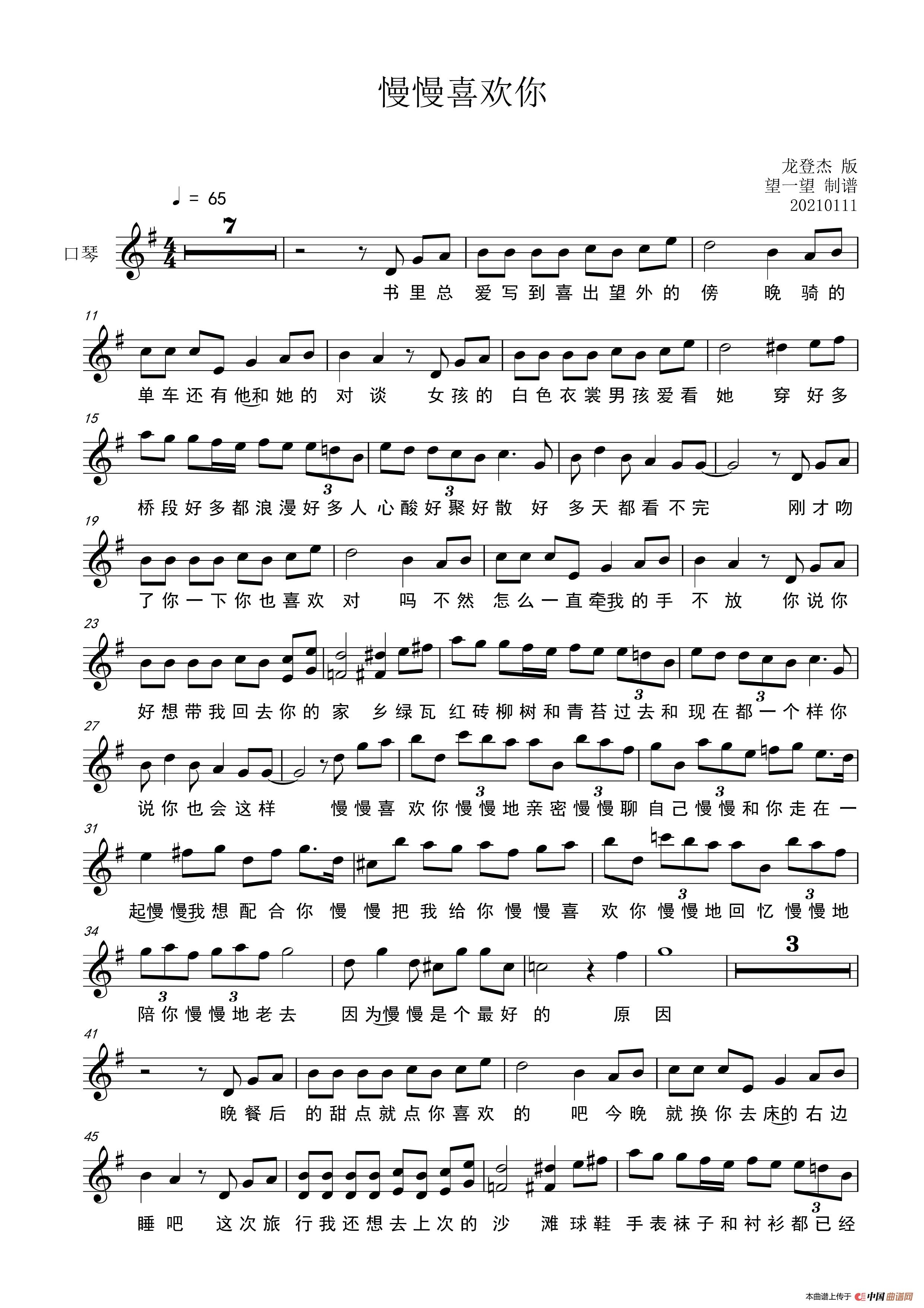 20-6 慢慢喜欢你 -G- 首调简谱(半音阶口琴)
