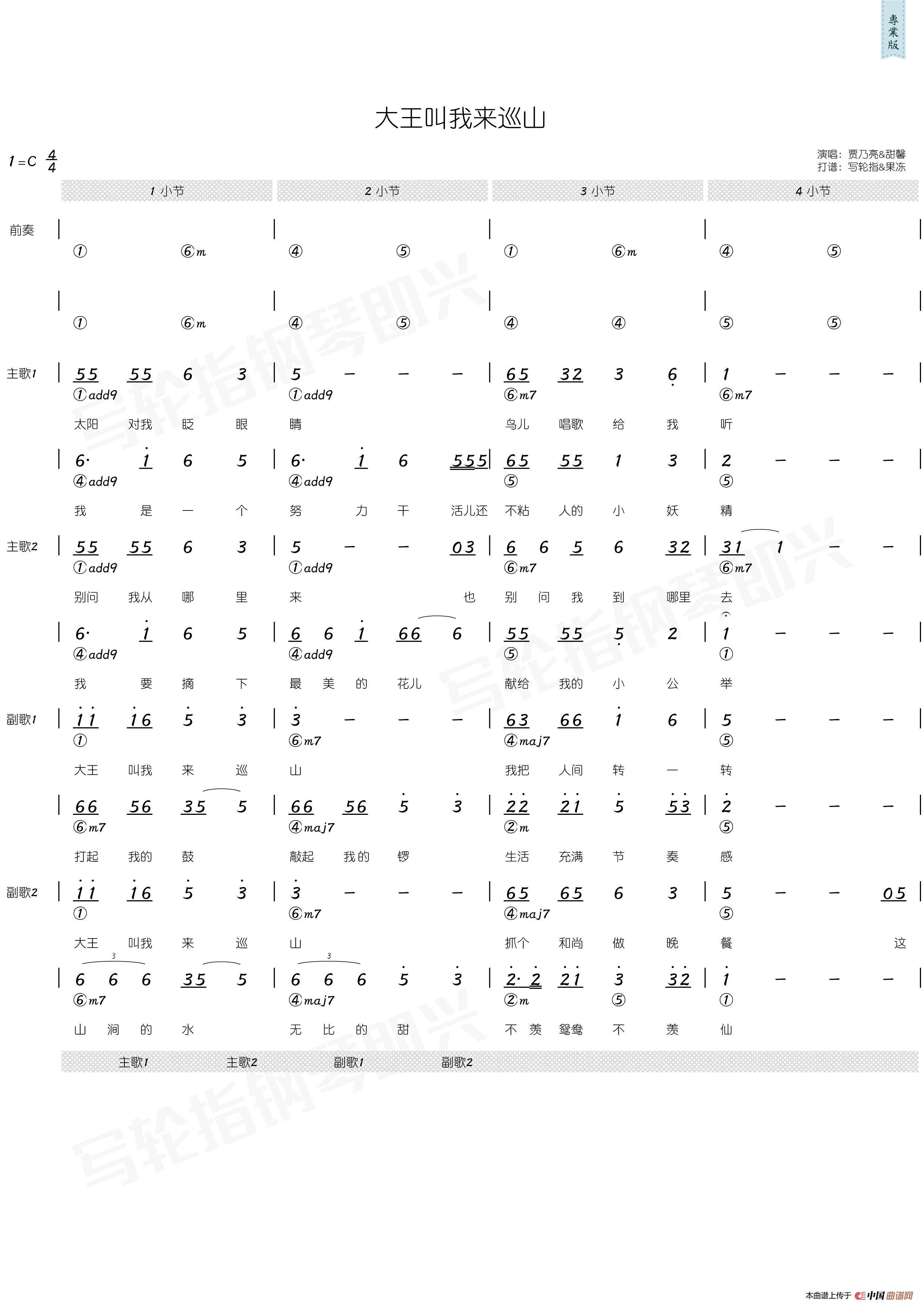 大王叫我来巡山(简和谱)(1)_原文件名:D大王叫我来巡山-贾乃亮&甜馨(专业版).jpg