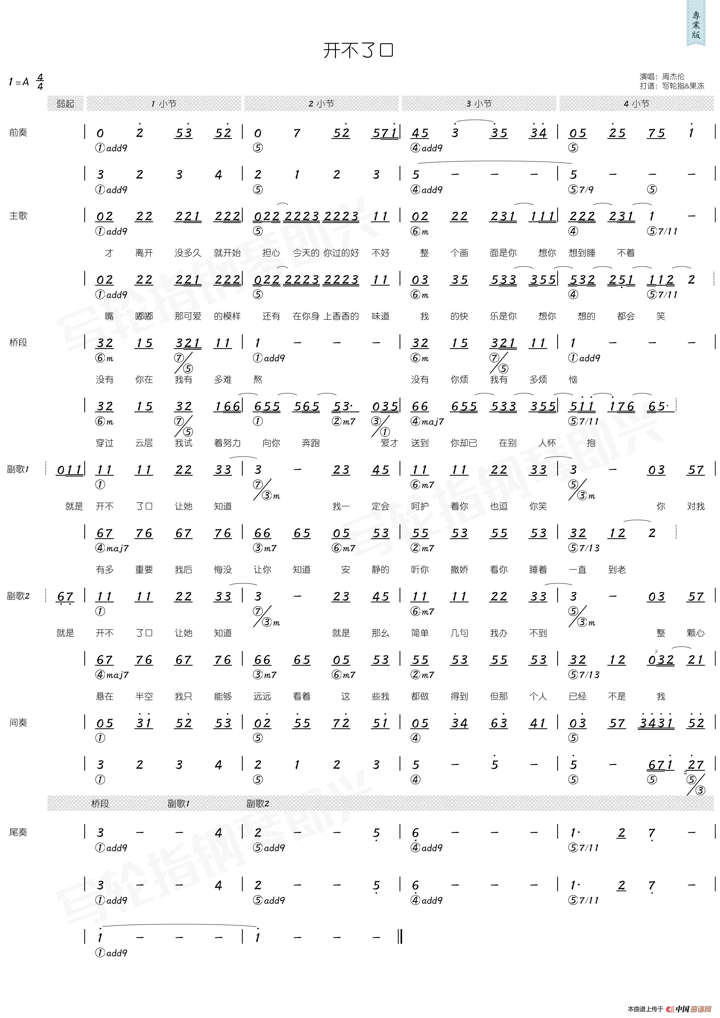 4.转位和弦根音位于斜线之前,和弦位于斜线之后。(这点与其他乐谱相反)