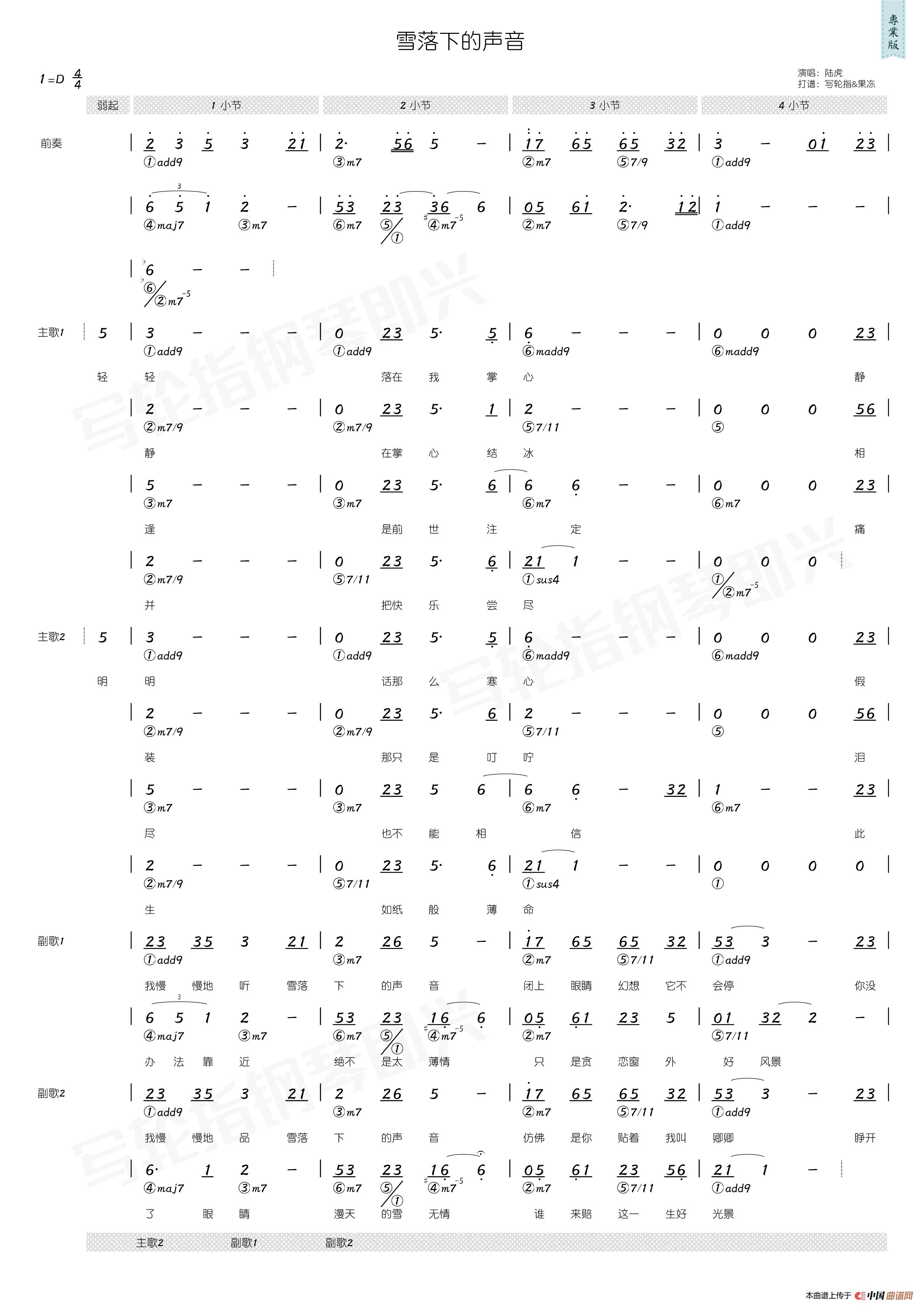 2.乐谱非常重视段落的划分,建议您在不同的段落用不同的伴奏型来演奏。