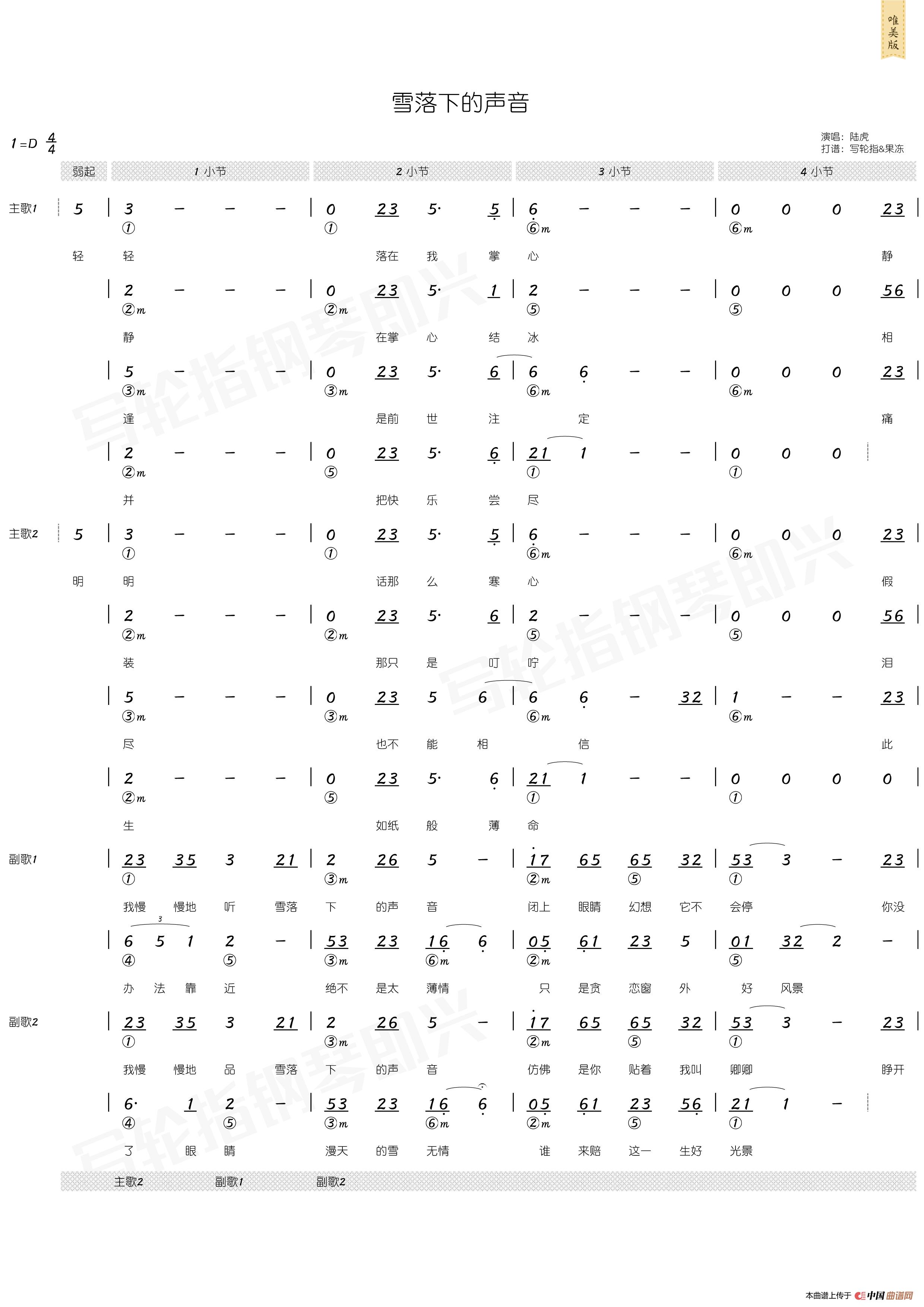 3.乐谱重视弱起小节的划分,有弱起或者附加的小节线均为虚线。