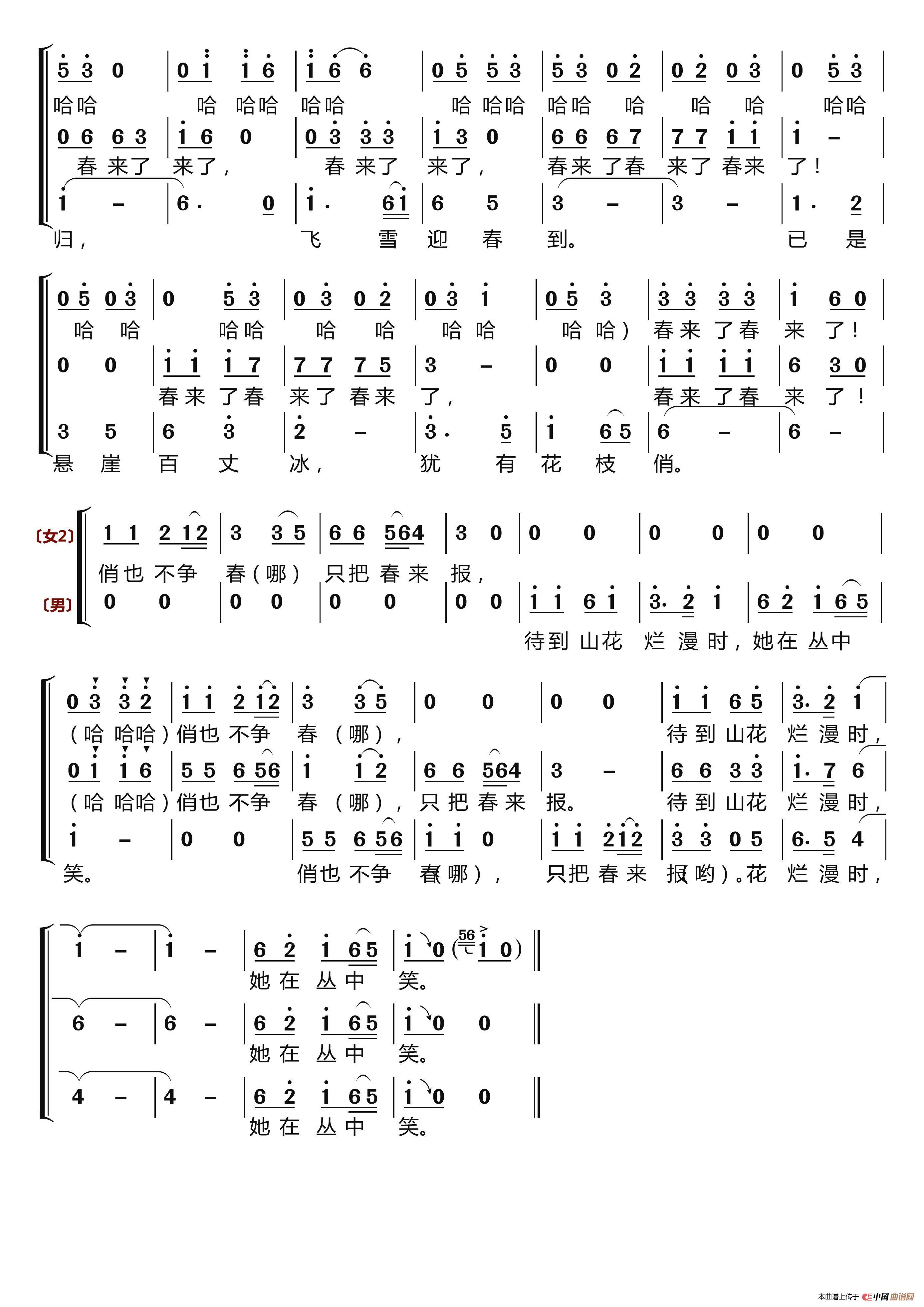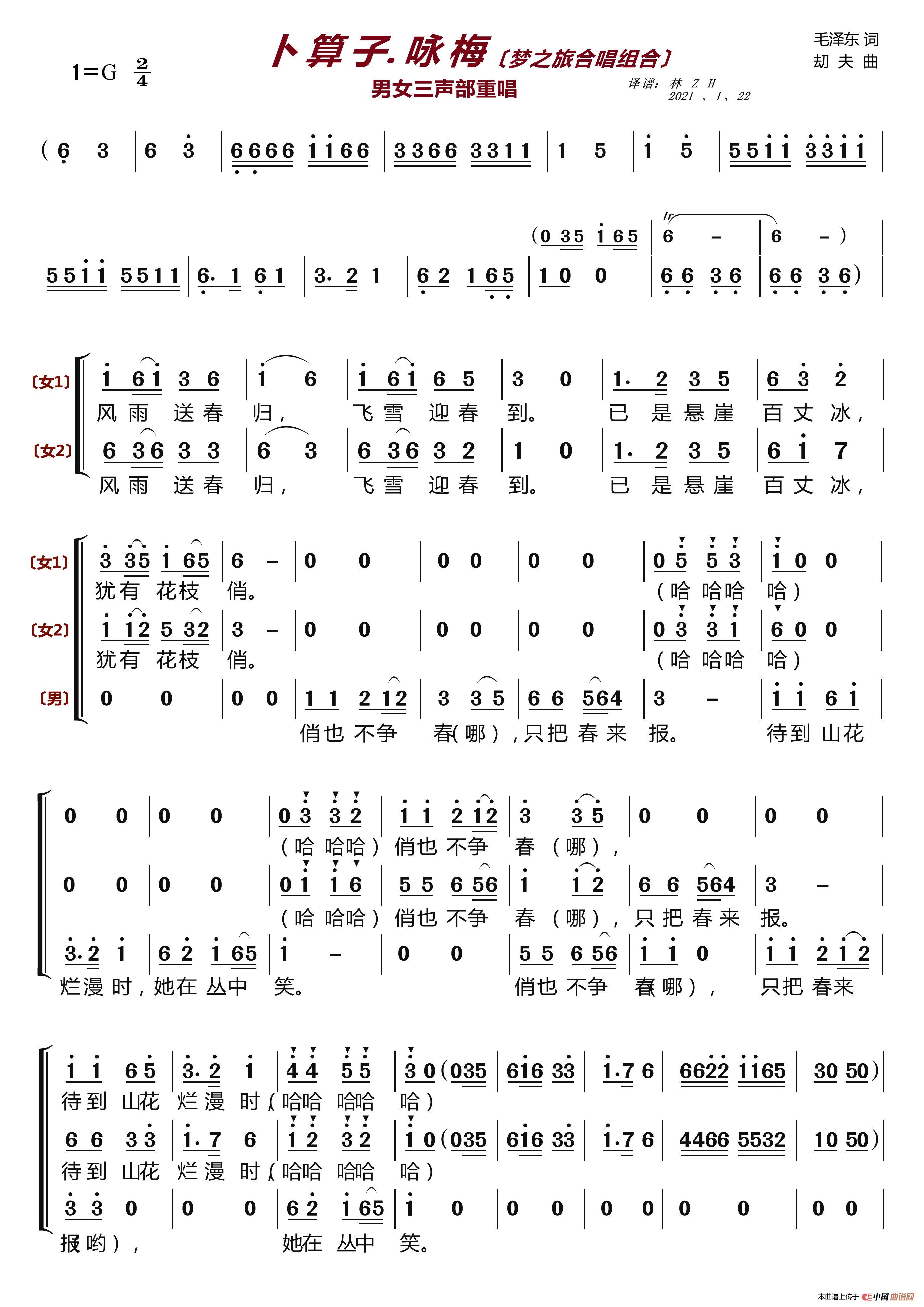 关于《卜算子.咏梅〔梦之旅合唱组合〕》曲谱的评论