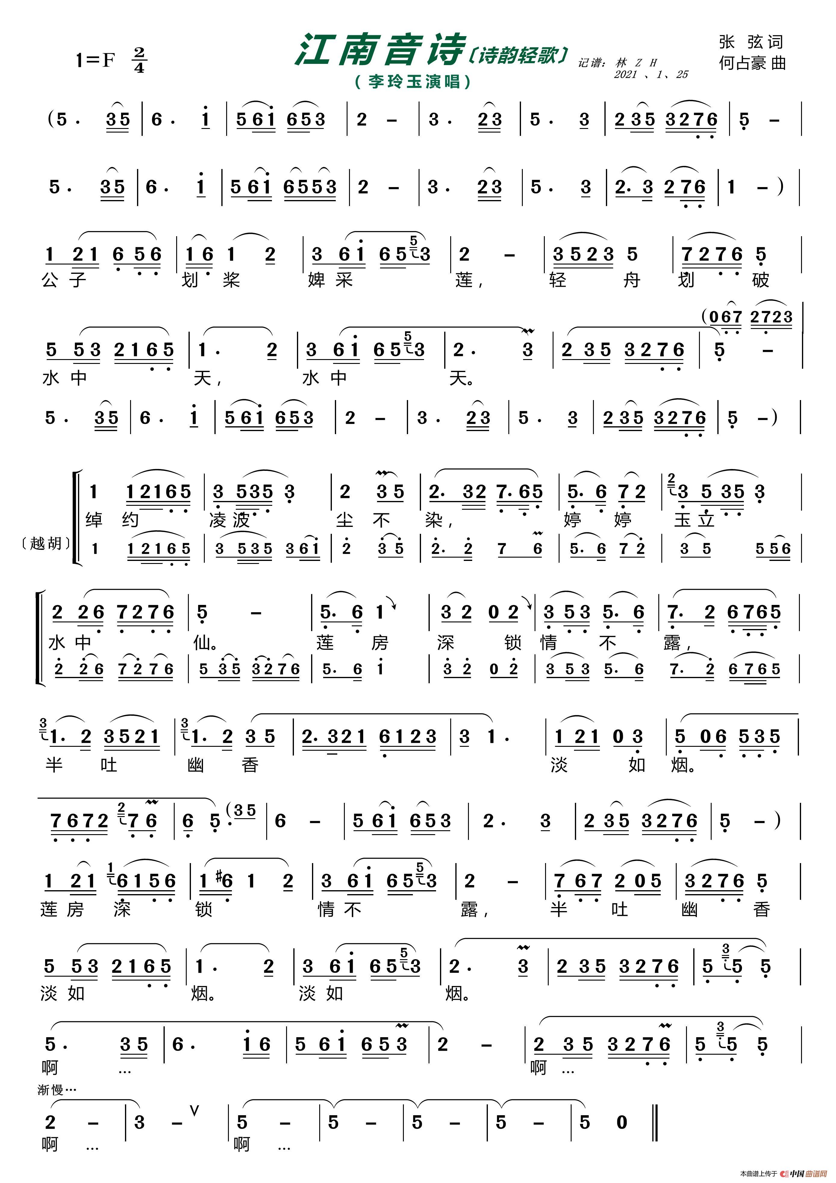 关于《江南音诗〔李玲玉〕》曲谱的评论