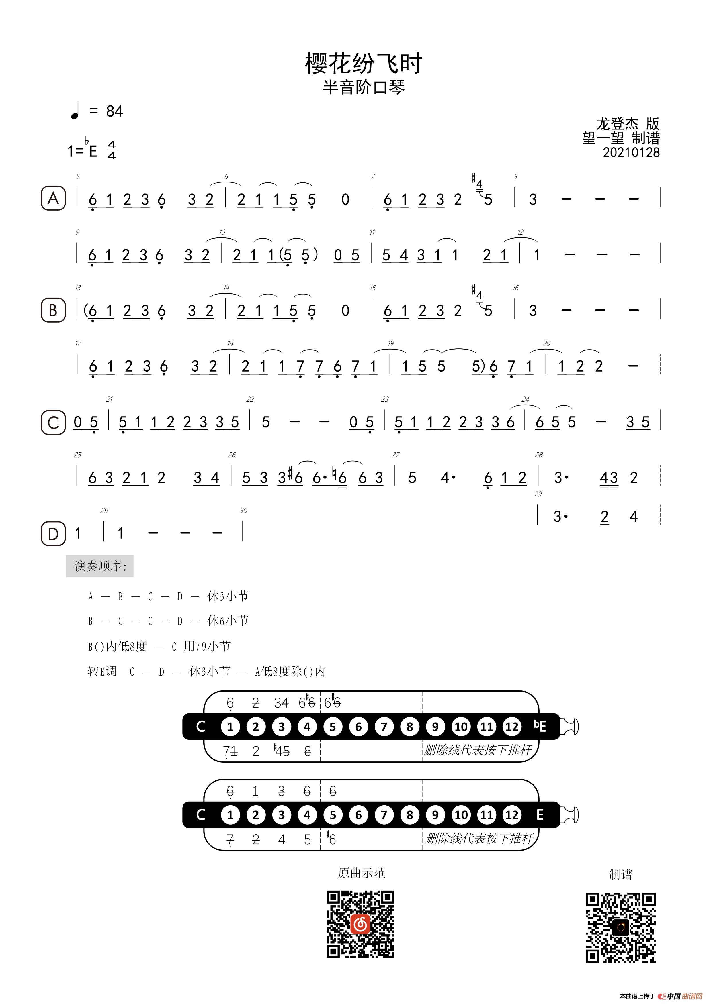 樱花纷飞时 -Eb- 首调简谱(半音阶口琴)