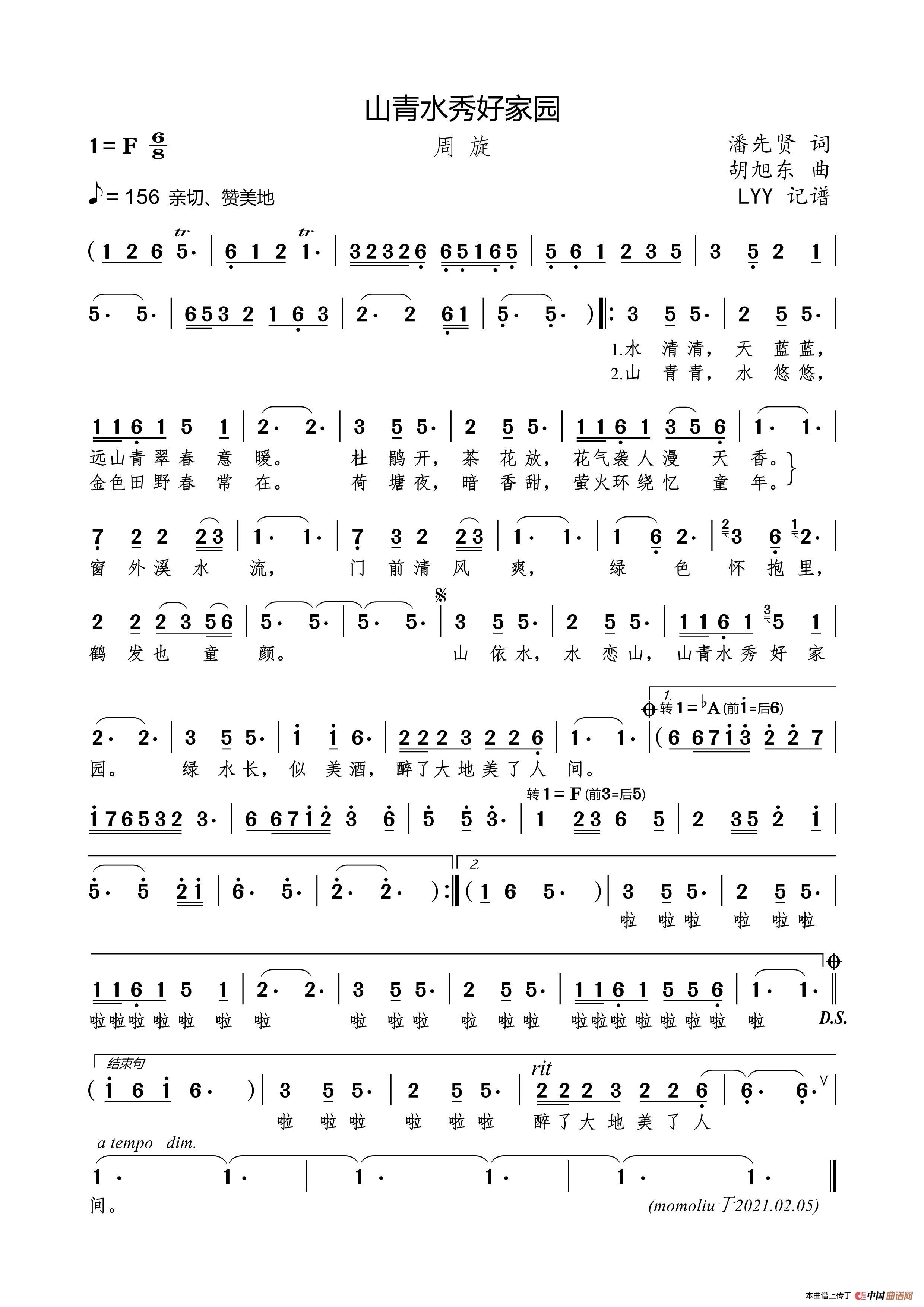 关于《山青水秀好家园》曲谱的评论