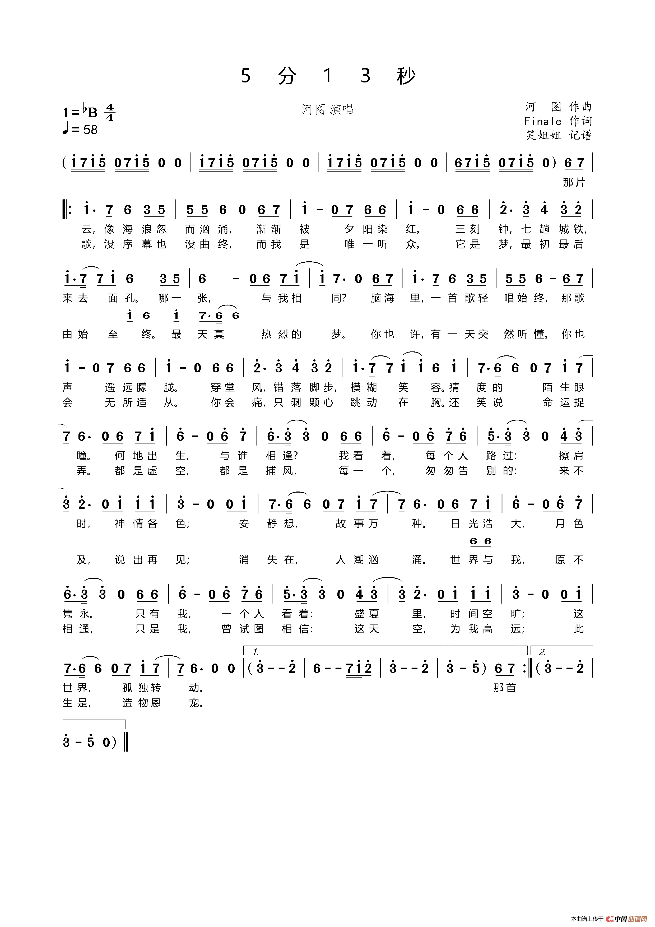 《5分13秒》原创作品 Finale作词 河图作曲 河图演唱 www.ktvc8.com/article/article_728559_1.html 请关注、收藏、点赞、评论、分享! [回复]
