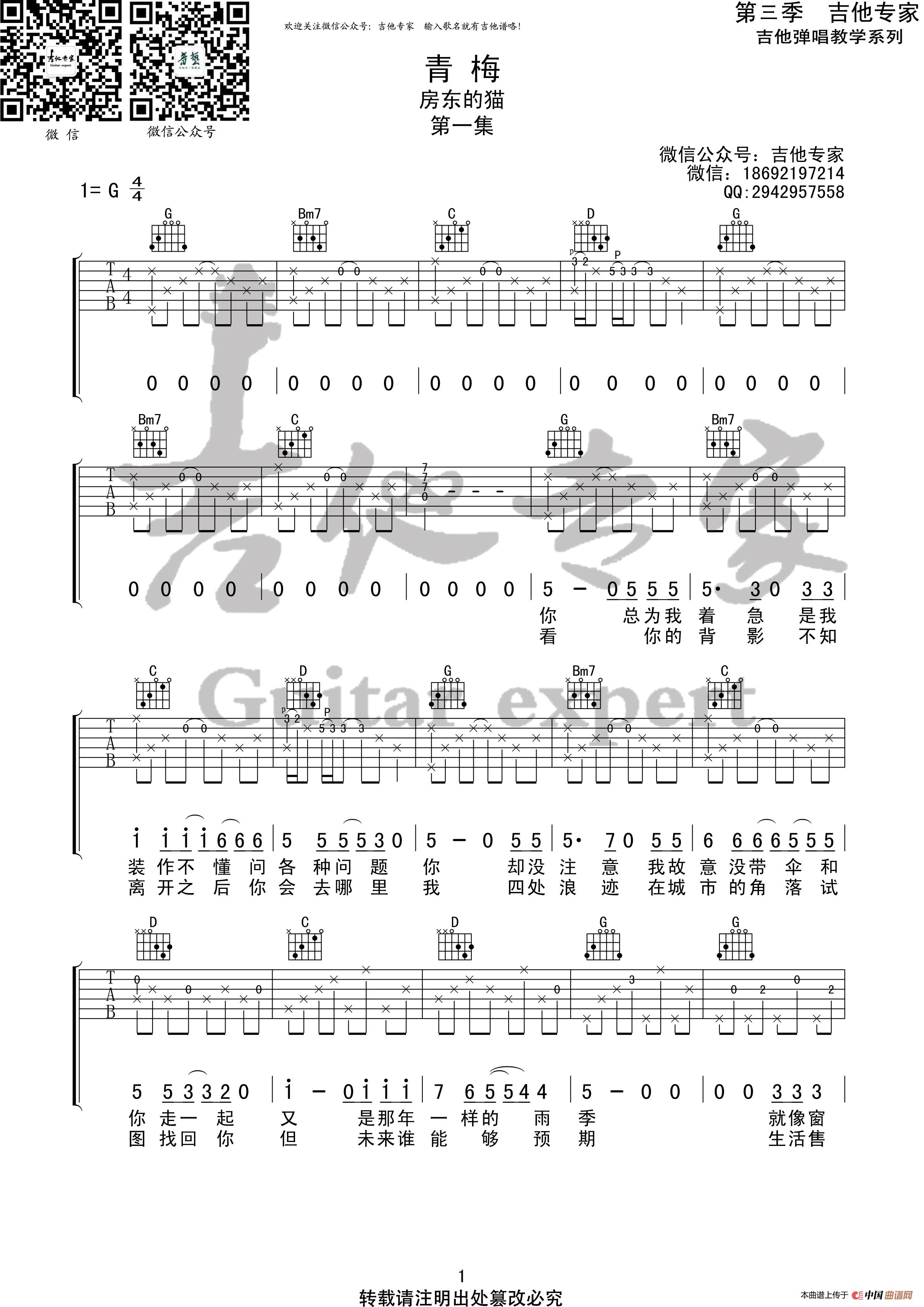 青梅 原版吉他谱