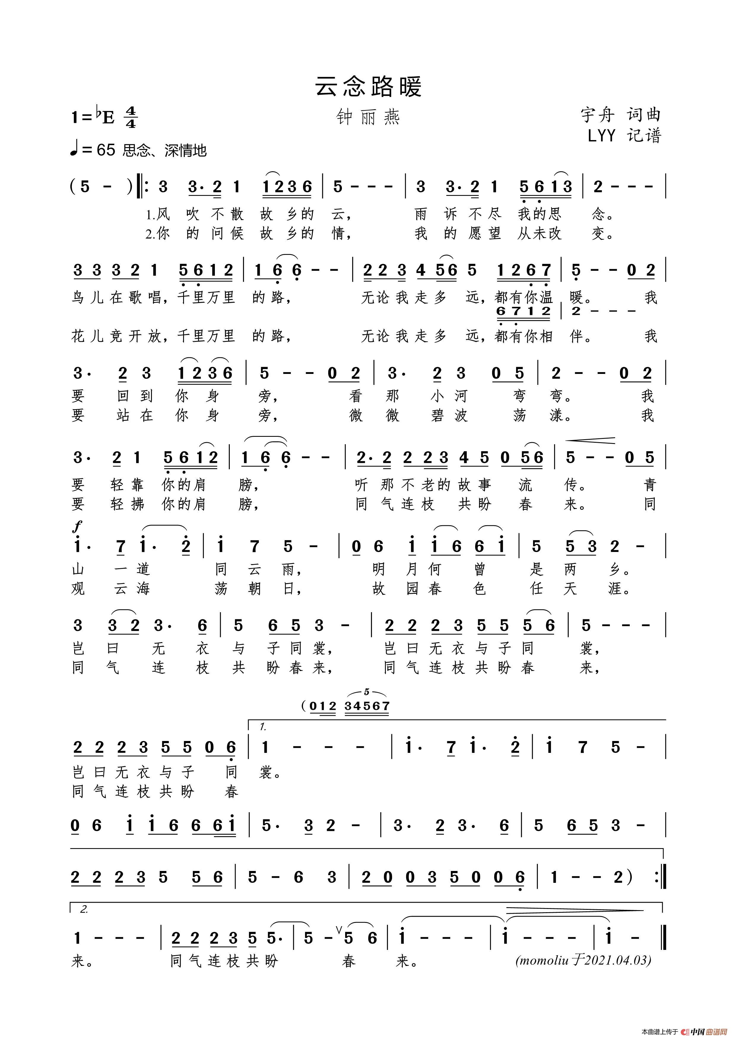 关于《云念路暖》曲谱的评论