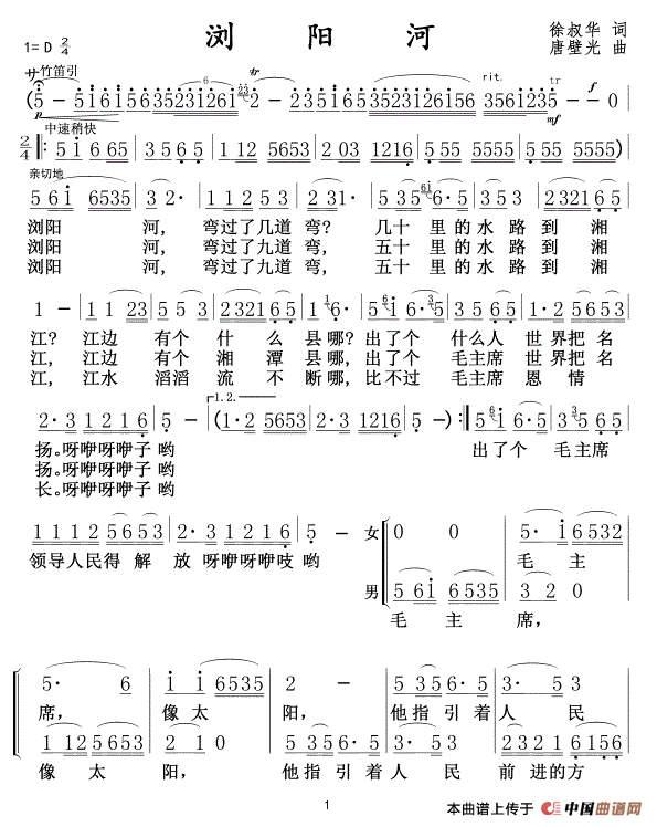 关于《浏阳河》曲谱的评论