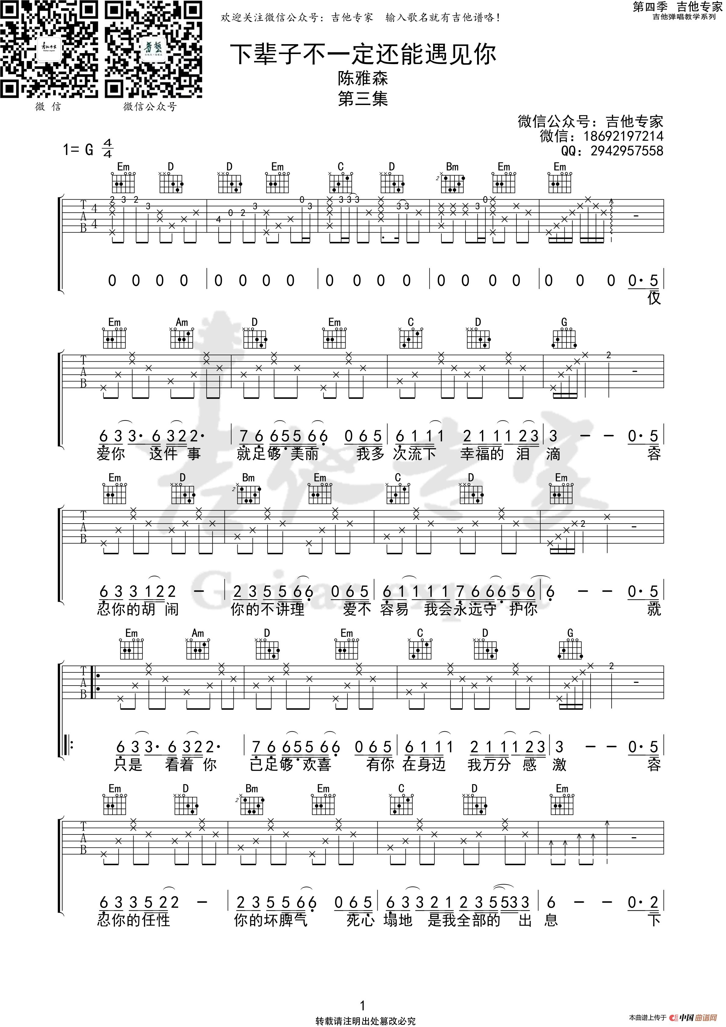 微信公众号:吉他专家 输入歌名就有谱子咯